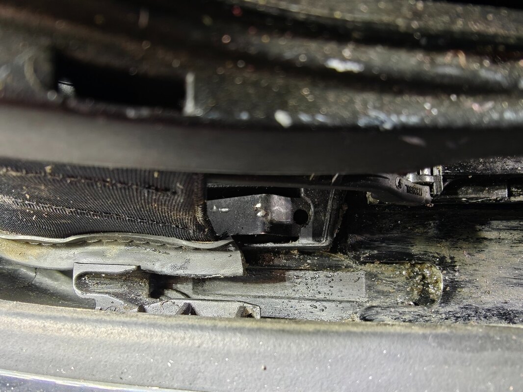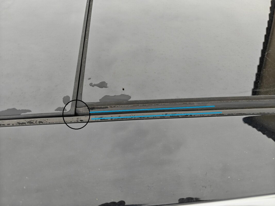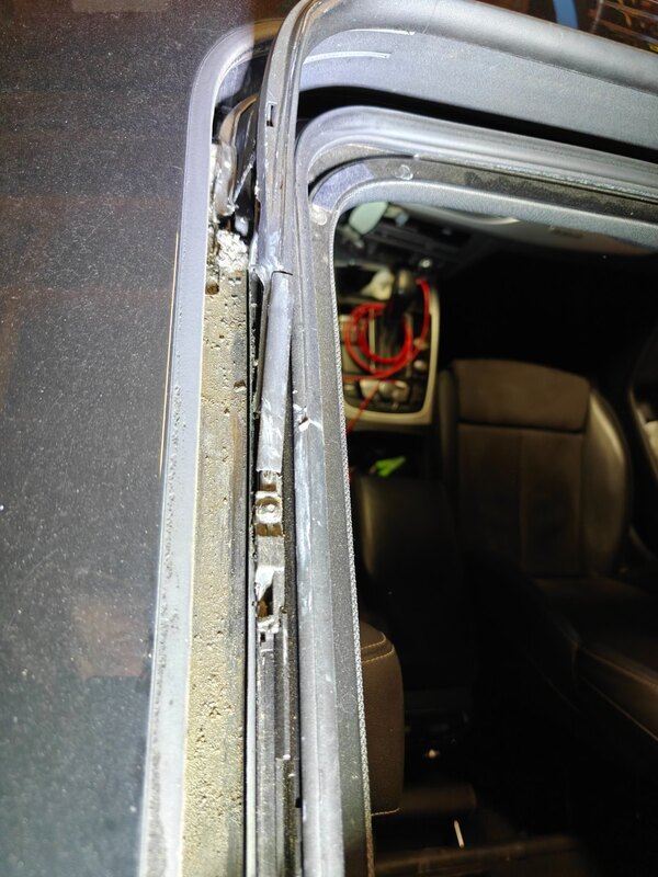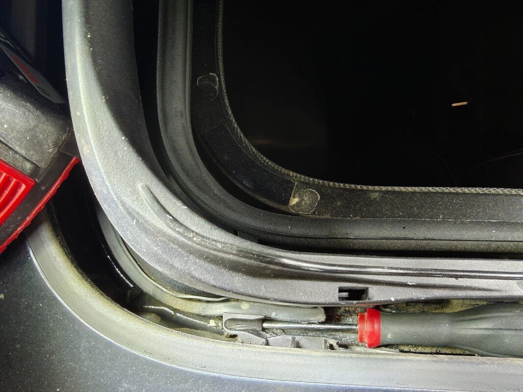 J'ai résolut mon problème de fuite en nettoyant bien la goulotte coté conducteur. Pour moi les toits ouvrants ne sont pas 100% mais plutôt basé sur un système de recouvrement. Les joints sont la pour bloquer le plus gros mais laisse toujours passée une partie. Sur l'A6 il y a en plus une pate qui passe entre deux joints pour faire l'ouverture donc a force il s'use. L'eau rentre par la, a la jointure des joints Je sens aussi que la compression des joints ou il y a les traits bleus est moindre a force d'ouvrir le TO. Donc pour ne pas avoir de fuite il faut un bon écoulement dans la goulotte, chose que je n'avais pas du tout : L'eau ne peux clairement pas s'écouler jusqu'à l'évacuation. Après le nettoyage : Faut bien nettoyer car il y a un petit tunnel pour que l'eau coule jusqu'à l'évacuation. Après nettoyage j'ai refais un test avec le TO fermé et j'ai versé l'eau dans le croisement de joint. 0 goute a l'intérieur J'ai refais le test cette fois avec le TO ouvert et j'ai bouché avec mon doigt l'évacuation jusqu'à a la limite du filet. L'eau s'est mis a coulé a l'intérieur. C est le joint de la vis juste a gauche du tunnel qui laisse passé l'eau. Il n'est pas déchiré et flex, mais pour moi il n'est pas comprimé. Soit a l'origine c'est étanchéifier avec la graisse tout autour soit le niveau ne peux jamais arriver a sa hauteur vu le débit de l'évacuation. J'ai essayé avec une bouteille d'eau avec un débit assez élevé et ça n'arrive pas au joint. Le joint est surélevé par rapport a la goulotte. En rouge le joint , en noire surélévation :1 point