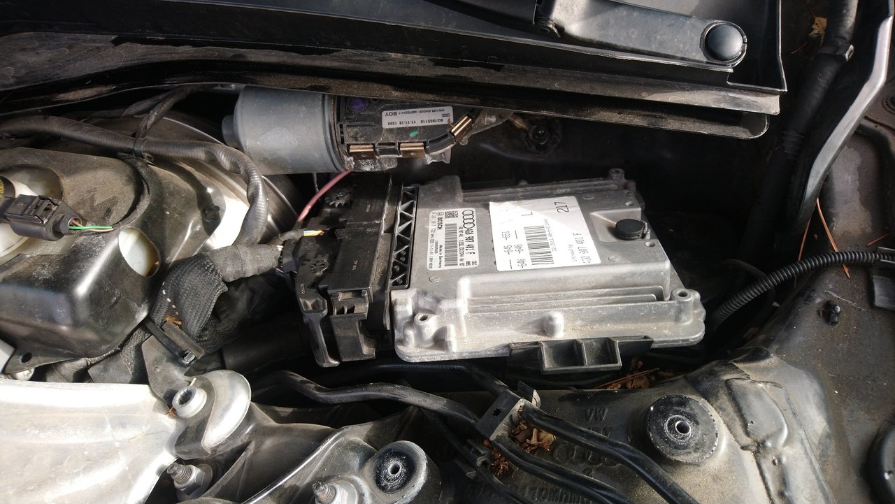 TUTO RETROFIT HOMELINK Pour cela, 2 possibilités : – Acheter le kit chez K-Electronic pour 1150€ ; – Acheter au détails sur internet (environ 400€/450€). Pour l'achat au détail il vous faudrat : – le câblage chez Kufatec pour 49€ ; – l'émetteur sur ebay pour environ 100€(qui se place derrière la calandre) ; 4H0907410 (433,92Mhz) ou 4H0907410A (868,3Mhz) → tout dépend de la fréquence de votre portail ; – le plafonnier (entre 100€ et 300€) avec le bouton homelink 4G0947135»X» (la lettre dépendra de vos options (toit ouvrant ou pas, led ou pas,...à vous de voir sur la toile) ; Quoiqu'il en soit, si votre portail n'est pas dans la liste des produits compatibles, il vous faudrat installer en plus un récepteur universel Homelink. Armez vous de patience car faut dépoiler la moitié de la voiture. Comptez donc environ 5h si vous êtes «habitué», ou la journée si vous êtes novice. Sachant qu'après le montage il vous restera encore le codage et l'apprentissage des boutons. Nous allons décliner ce tuto en 3 étapes : – Démontage de la voiture pour la pose du câblage ; – Pose du câblage ; – Connection au BCM 1 et 2 ; – Codage et apprentissage des boutons. Pour vous donnez un aperçu global du démontage, voici une vue de là où passera le câble : Vous aurez compris que ce ne sera pas une mince affaire car il faudrat relier le câblage au BCM (sous le volant) ainsi qu'au BCM2 (dans la malle droite du coffre). Et en plus les emplacements seront occupé donc il faudra couper les fils et se repiquer dessus. Quant au passage de cloison entre l'habitacle et le compartiment moteur il va falloir s'armer de patience car c'est bien cacher. En gros beaucoup de démontage pour trouver un bout de caoutchouc. lol I. Démontage de la voiture A / Coffre Vider entièrement le coffre Enlever les barres alu Enlever le seuil de coffre Enlever les garnitures de chaques côtés (attention au câble pour la lampe) Une fois dépoilé Faire la même chose de l'autre côté pour un accès simplifié pour passer le câblage et l'attacher propre avec des rislans. B / Habitacle Commencer par démonter le cache sous le volant Puis les garnitures de bas de porte Alors le truc c'est de commencer par la garniture du milieu en premier elle vient s'enclencher dans celle de l'avant et de l'arrière. Donc en gros si vous l'enlevez pas en 1er, les autres garnitures seront bloquées et ne viendront pas. Ca tiens que par des agrafes donc très facile à enlever, il faut juste faire levier avec un outils en teflon. A l'avant , Attention à la goupille pour la tirette du capot Puis à l'arrière , C / Compartiment moteur Il faut donc maintenant accéder à ce fameux passage de cloison qui se situe sous le bocal lave glace. Enlever le cache Dévisser les 2 vis qui maintiennent le bocal lave glace puis le tirer vers la gauche. Le tuyau est juste pris dans un joint. Déboiter et débrancher le calculateur pour un accès simplifié. Dévisser les 5 vis du capot de la boite à fusible pour un démontage plus aisé. Déboiter le raque à fusible (en rouge les petits ergots et en vert dévisser la masse) Puis dévisser le bocal (2 écrous). Puis enlever le bocal. Seulement maintenant nous avonc accès au fameux passage de cloison. Il faut juste couper la tétine pour passer les 3 câbles qui iront à l'émetteur. Comme ils sont intelligents chez K-Electronics, ils n'ont pas emboîté la fiche qui ira sur l'émetteur, donc on peut passer aisement les 3 fils. Pour le branchement il y a des numéros sur chaques fils donc aucuns risques de se tromper. Une fois le câblage passé, on peut l'amener au niveau de l'emplacement de l'émetteur et le fixer avec des rislans. La longueur est assez juste alors essayer de passer par le chemin le plus court pour ne pas se retrouver trop court. Puis placer l'émetteur dans le logement et le connecter. Voilà, on en a fini pour la partie compartiment moteur. On peut tout remonter et fermer le capot. II. Connection et branchement A / BCM 2 On va commencer par la connection au BCM 2 (module confort) dans le coffre à droite. Le plus «accéssible» des 2. La pin vient se brancher à l'emplacement 32 du connecteur noir. Déboiter la fiche noir en libérant l'ergot et basculer le levier violet. Une fois la fiche enlevé il faut couper le rislan qui maintient les câbles et libérer la fiche blanche pour pouvoir brancher la pin. Mais l'emplacement est déjà occupé par un autre câble alors il vous faudrat vous repiquer dessus quelques centimètres en amont (au moins 5 pour être tranquille). Plusieurs possibilités comme couper et mettre un manchon à sertir, ou alors simplement dénuder et faire un point de soudure, à vous de voir. Une fois le câble repiquer sur l'emplacement 32 vous pouvez remettre le calculateur et remonter toute la partie coffre. On va maintenant s'attaquer au BCM dérrière le volant. B / Branchement au BCM Là c'est une autre histoire niveau accès!! Désolé j'ai pas trop de détail en photo. Déclipser le raque à relais en pinçant les ergots de chaque côtés. Puis derrière il y a un raque à fusible qu'il faut aussi déboîter de la même façon. Le BCM est en visu, plaqué en haut tout au fond. Le câble se branche sur la pin 4 du connecteur C (c'est une fiche marron). Libérer de la fiche marron la fiche noir qui vous permettra d'insérer la pin. Comme pour le BCM2 l'emplacement sera occupé alors il faut se repiquer dessus. Mais vu l'accès c'est beaucoup moins facile. Je conseil donc de poser un raccord épissure rapide (mais ça c'est vous qui voyez). C / Raccordement masse et fusible Maintenant que tout est relié on peut passer à la connection électrique. La pin du fusible va à l'emplacement 10 du raque ST1 avec un fusible de 5A. Appuyer sur l'ergot «A» pour libérer le raque. Puis sur l'ergot «1» pour libérer la barette N°4. Soulever les 3 ergots pour enlever le capot. Puis enlever la tige violette pour pouvoir 