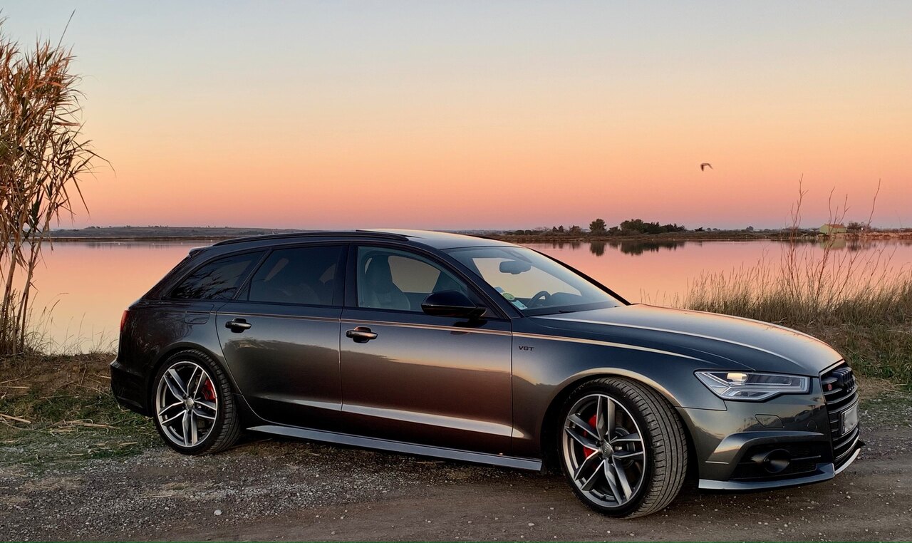 Bonjour la Communauté 1 er post sur ce forum que j’observe en spectateur depuis quelques mois.. Car, ça y est ! je suis enfin propriétaire d’une Audi ! Avant de présenter la machine, quelques mots sur moi : je vis aux alentours de Montpellier avec ma femme et mes 2 enfants ; je viens d’avoir 40 ans et je suis passé naturellement par un craquage de Quadra. en m’offrant un bon gros V6 Bi turbo !! L’idée étant de changer la voiture familiale, que je ne pouvais plus blairer (Citroën Berlin..burp !), pour un véhicule premium un peu couteau-suisse (confortable, spacieux, sportif, etc..). N’étant pas du tout sur la tendance du SUV, mon choix s’est porté sur le Break Diesel A6 c7 Compétition de 326cv et son V6 BI Turbo (face lift, de 2017). C’est une très belle version, bien vitaminée, sobre et élégante qui surpasse la dernière (c8) dont l’habitacle est selon moi assez décevant. Mon vrai péché mignon aurait été une RS6 mais là tout devenait déraisonnable.. !!! J’ai regardé un peu le marché Français mais ça manquait vraiment d’offres et d’options sur les véhicules proposés. Je me suis tourné donc vers un bon ami qui travaille en Allemagne depuis quelques années dans l’ingénierie mécanique (oui, ça aide !) afin de dénicher la perle rare. Après quelques mois de prospection, on a trouvé une première main de février 2017 avec 76 500km certifié. C’est un garage qui la vendait pour le compte d’un footballeur de la ligue 1 Allemande, pour la petite anecdote ! Bref, annonce très alléchante et à 2 pas de chez mon pote qui part l’essayer direct, le jour de la parution de l’annonce ; voiture impeccable sous tout rapport avec toutes les options qui me font rêver ; je négocie 500€ de remise et la réserve direct. Ah oui, il m’en est passé sous le nez un certain nombre et il faut être très réactif en Allemagne ; il y a des gens qui cherchent depuis l’Europe entière (particuliers, courtiers, garages spécialisés…). N’ayant rien à cacher ici, je l’ai acheté 36 500€ (révisée et prête à l’export) et payé 3 100€ de CG en France. Bref.. je suis allé la chercher fin septembre 2021 ; aller en avion, roadtrip de retour en passant par l’Autobahn J’ai passé le WE chez mon pote, ça faisait plaisir. J’en viens désormais un peu plus aux faits pour vous présenter ma petite dernière : C’est une S-Line Black Edition, phase 2, avec Carrosserie Gris Daytona nacrée ; étriers de frein rouges ; chaussage en pneu neige 20 pouces. Les principales options (et par ordre d’importance à mes yeux) sont : · Sièges avant sport S – sellerie cuir avec surpiqures rouges y compris volant, levier de vitesse et accoudoirs · Toit ouvrant panoramique · Jantes 20’’ 5 branches titane mat · Système HIFI Bose surround · Système de navigation MMI PLUS · Préparation à l’attelage · Différentiel Quattro Sport · Palettes au volant · Sièges chauffant (à l’avant) et volant chauffant · Sièges réglables électriquement et à mémoire · Ceintures de sécurité rouges · Ciel de pavillon en Alcantara noir · Système d’accès sans clés (keyless entry) · Coffre assisté électriquement · Parking systèm plus :caméra de recul + radars AV/AR · Phares LED · Vitrages acoustiques et surteintés à l’arrière · Clim 4 zones · Système de prévention des collisions · Indicateurs de limitations de vitesse · Airbags latéraux aux places arrière · Pack rangement à l’arrière (porte gobelet, prise 12V..) · Rails et sangles de coffre · Fixation Isofix à l’arrière · Trappes à ski et housse de rangement J’ai ensuite fait moi même quelques petites modifications plus à mon gout, telles que : - Pose d’un attelage amovible à fixation verticale (bosal Oris, 7 faisceaux) - (achat d’une remorque accessoirement) - Dépose du sigle quattro à l’arrière - Dans une logique de déchromage, pose logo (anneaux) NOIR à l’avant et à l’arrière - ….Et dans un parfait illogisme, pose de garnitures Chromées sur les échappements ! (je sais pas, je trouvais que le diffuseur arrière manquait de caractère en black…mais je ne suis pas sûr d’assumer ces contradictions…) - pose d’une protection adhésive sur le seuil de coffre (couleur carbone) - dépose de ma poignée avant conducteur pour une horrible chinoiserie.. mais tellement pratique : étui à lunette de soleil - adhésifs noirs sur plaque immatriculation - tapis de sol plastique pour le coffre Après plus de 2 mois d’essais, je suis globalement très satisfait de ma belle que je regarde encore amoureusement, comme au 1erjour. Voici, ce que j’aime beaucoup : - la gueule ! c’est très subjectif comme avis mais j’adore son look. C’est vraiment ce que j’attendais comme savant mélange de sobriété, élégance et sportivité. Les combinaisons de couleurs (gris foncé, noir, rouge) et de matière (cuir, alcantara, peinture nacrée) me plaisent beaucoup. Le pareclosage en noir affine la silhouette. C’est harmonieux, il n’y a pas un vieux placage sordide qui fait tache. J’adore ! - le poste de conduite : les sièges sport baquets, l’immense toit ouvrant, les sièges / volant chauffant font que l’on se sent toujours exclusif quand on monte dedans.. Et c’est très flatteur ! Il y a aussi l’ergonomie du tableau de bord avec ces lignes courbes, l’affichage du MMI derrière le volant, les assemblages.. tout est impeccable. Un tout petit regret : un cuir un peu plus étendu au niveau de la boite à gants et des trappes de rangements sur la console centrale - Le son : le bruit du V6 qui ronronne parfois comme un V8, très plaisant évidement. L’acoustique du véhicule vraiment très satisfaisante : l’insonorisation lors de l’usage du kit main libre ; la sonorisation avec un ensemble Bose pas loin de rivaliser avec les Focal de mon salon - La boite de vitesse (avec un petit bémol): marche très fort ; boite 