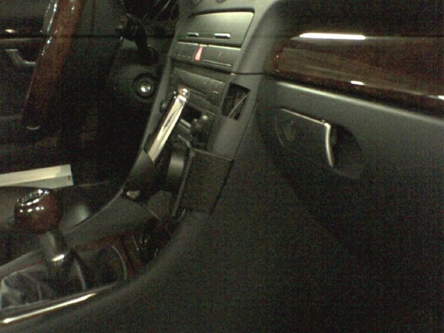 Salut à tous, Je viens de finir l'installation de mon iPod dans l'Audi A4. Ca fonctionne biennnnnn Par contre, avant j'avais un Kit Telephone mains libres et comme il ne me sert a rien je l'ai simplement enlevé. Et donc j'ai placé l'iPod a cet endroit. Pour ce faire, j ai commandé le support ProClip et je suis vraiment décu. Pour 3 raisons : 1 - on vois toujours les trous dans le tableau de bord (A cause du kit main libre) 2 - Le support laisse un grand espace entre lui et le tableau de bord 3 - Le support est noir et ma console est bleu foncé Alors, du coup je cherchai un support de ce style ci . C'est bien plus propre et plus classe (Perso en cuir c est classe!). Malheureusement ce dernier ne bouchera pas mes trous, de plus il se trouve a un endroit qui pourrait gener les grandes jambes de ma moitié ! Je me demandai si certains d'entre vous n'avez pas des idées afin d avoir un montage propre et clean. Voila, je joints quelques photos de mon montage je pense que ca pourrais en interesser quelques uns. [attachmentid=11631] [attachmentid=11632]