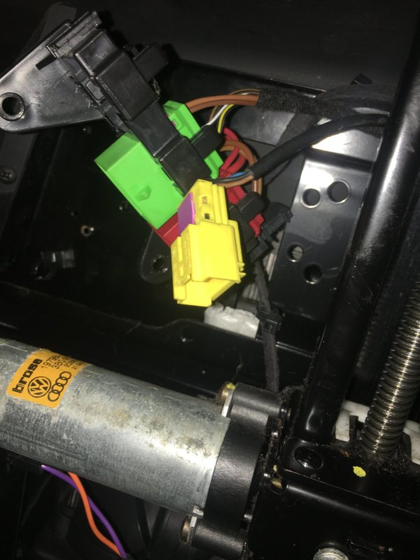En effet, c'est bien ce module, ce n'est pas le calculateur confort mais bien un calculateur dédié pour les sièges et les rétros à mémoire, il est fixé au siège de la donneuse à l'origine alors après une grosse soirée de jurons, j'ai bien avancé! j'ai pris des photos, mais la qualité laisse à désirer, je les posterai plus tard, d'autant que je n'ai pas fini... que je suis mort et que je n'ai pas mon câble iphone sous la main... Alors dans la catégorie des bonnes nouvelles: j'ai bien été en mesure de piloter les moteurs recaro avec mes commandes et mon boitier mémoire audi... c'est fonctionnel, soudé, et une fois que j'aurai branché la fiche noire dans le pilier A; ca sera fonctionnel!!! (car il n'est pas nécessaire de brancher la commande de mémoire pour que le calculateur en question fonctionne donc le siège bouge déjà mais je n'ai pas encore branché la commande des mémoires) La seconde bonne nouvelle... C'est que vu que les sièges "non recaro" ont une fonction en plus (le réglage de l’assiette du siège) j'ai pu réutiliser cette partie du faisceau pour que la position du support lombaire soit elle aussi enregistrée! ce qui n'existe normalement juste pas du tout même sur les sièges normaux! La mauvaise nouvelle c'est que les commandes d'origine du siège sont signées recaro, avec 2 relais sous le siège pour d'une part inverser la marche et d'autre part bloquer le moteur à l'arrivée en butée (grâce à des microswitchs) il me semble impossible de conserver ces commandes (bien que... si j'étudiais le circuit, même si ce n'est pas mon domaine, ca devrait) j'ai tout de même besoin de la place des relais... pour le moment j'ai donc provisoirement placé la commande des sieges A6 sur le coté, vu leur esthétique, il me semble qu'il sera simple de les intéger à la place des boutons recaro sans que personne ne puisse se douter que ce n'est pas d'origine... (sauf vous tous qui me lisez) mais je vais devoir jouer du dremel... Alors dans l'ordre de ce que j'ai fait: -Reculer le siège au maximum (pas obligatoire mais tellement plus simple pour démonter -déconnecter la batterie (sinon gare à l'airbag) -enlever les 2 caches plastiques des rails de siège à l'arriere -déboulonner les 2 boulons de 13 situés au niveau de la moquette, au centre du siège, à l'avant -secouer un peu le siège pour qu'il sorte du gond et demander à un ami de le tenir incliné vers l'arriere -couper le colson du faisceau -débrancher les fiches (la rouge, c'est l'électricité, la verte c'est le siege chaffant, et toute notre opération va consister à greffer une orange -débrancher l'airbag (il semble que la partie ariere du clip mauve casse facilement (hé merde...) mais elle a aussi l'air de ne servir à rien... -pousser le siege vers l'arriere en faisant attention à ne pas l'accrocher à la moquette et le sortir de la voiture --> le poser sur une table serait une meilleure idée, je l'ai fait dans le coffre car le garage n'est pas grand mais ce fut très inconfortable... -pour bien voir tout ce qui se cache sous le siege, il y a 2 petites attaches qui maintiennent une belle moquette à enlever -Le cœur de la bête est dévoilé! -couper tout les colsons -mettre à part le cable gainé de l'air bag et ne l'alimenter sous aucun prétexte en courant -repérer les connecteurs sur les relais, les déconnecter, sectionner le fil blanc et le fil jaune déclipser toutes les connectique -dévisser les caches plastiques et extraire les commandes -déconnecter la fiche orange et mauve sur le moteur principal -sectionnez les fils des microswitchs (j'ai laissé une petite marge au cas ou je voudrais revenir en arrière ou m'en servir pour plus tard (ce que je crois que je vais faire) -extraire toute cette partie du faisceau -une fois ces opérations effectuées, il reste les câbles suivants: -le jaune et blanc qui va sur un moteur -une fiche plate 4 fils (bleu, gris brun et brun/bleu) -la fiche gainée de l'airbag -la fiche verte -le moteur principal est identique et accessible, pas besoin de dédoubler, ça en fait un de moins! donc, on peux aussi démonter le moteur principal pour le remplacer par celui de la donneuse, on gagne de la place passons à l'étape soudure: je n'ai pas noté les couleurs des fils,c'est pour demain soir, mais à ce stade, pour faire mes essais, j'ai reconnecté la batterie sans mettre la clé, (il se trouve que le connecteur rouge au sol (pour le siege électrique) c'est un plus permanent, donc pas de souci de témoin d'airbag) j'ai dénudé mes cables, et j'ai fait mes essais sur le siege branché (histoire de bien mettre tout dans le bon sens) l'astuce consiste à dédoubler le + et le - des faisceaux de moteurs à mémoire pour pouvoir les connecter simultanément avec les moteurs d'origine qui n'ont que 2 fils... ensuite, il faut s'arranger pour attacher ces moteurs sous le siege de façon à ce qu'ils ne se débranchent pas, soient bien attachés, et ne gênent pas le bon déplacement du siege, je vous ferai une photo demain. j'ai donc été obligé de faire des essais, car contrairement au sieges proventant de chez audi, qui ont les mêmes couleurs de fils, même quand ils n'ont pas la fonction, les recaro ont des couleurs totalement différentes... du coup, ben il faut vérifier si la commande "avancer" ne produit pas le mouvement "reculer" (et c'est évidement traitre pour le cerveau, car le chariot recule quand on avance) les câbles des moteurs: -le bleu et le gris pour le moteur du dossier -le mauve et orange pour le moteur "avancer/reculer" (inutile car pour celui la on peux conserver celui du faisceau mémoire d'origine) -le jaune et le blanc pour le reglage de hauteur -il y a aussi 2 fils dont j'ai oublié de noter la couleur, ils sont dans la meme gaine noire que le connecteur 4 fils qui va dans le dossier, et l'un d'eux est vert... c'est celui pour les lombaires, je vous donne la couleur demain une fois le tout connecté et soud
