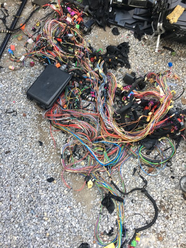A qui le dis tu! j'ai tellement mal partout que j'ai l'impression d'avoir le covid... 34 ans... mais toujours aussi jusqu'au boutiste dans mes passions la première photo, ce n'est que le faisceau électrique complet de ma donneuse... mais la partie qui nous intéresse est dans le faisceau du tableau de bord... avec un petit bout sous la moquette vers le siege (fiche verte vers fiche orange) si je devais le refaire, je trouverais une donneuse à vendre pour pièces, j' attacherai le tableau de bord avec son faisceau, le siège conducteur et les faisceaux de portières gauche et droite avec intérieur de porte gauche, ainsi que le bouton rétros et le calculateur de rétros (si il a été dévissé du tableau de bord) pour ce qui est du risque de tout casser... impossible, ce mod est même totalement réversible! j'ai laissé les faisceaux d'origine en place, j'ai fait des épissures dans les câblages pour me repiquer mais sans rien débrancher... seul le faisceau du bouton du siège a été un peu saccagé, mais il y a concrètement 10 fils à ressouder sur le faisceau de siege d'origine + 2 pour le siege chauffant, et roulez jeunesse! et si on est vraiment difficile, même en l'état, si un place un autre siège recaro, il va fonctionner direct et sans modif... j'ai aussi laissé les 2 connecteurs pour le bouton des rétros dans la console centrale, et les 2 branchement rétros dans les portières, si un puriste me rachetait la bagnole et voulait la récupérer rigoureusement d'origine, il pourrait, j'ai tout conservé! (c'est d'ailleurs valable pour l'intégralité des pièces, j'ai mis le double vitrage, j'ai gardé les vitres d'origine, j'ai changé les amortos, pareil, la crémaillère également... et ce sera pareil pour la boite) -