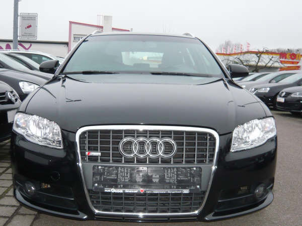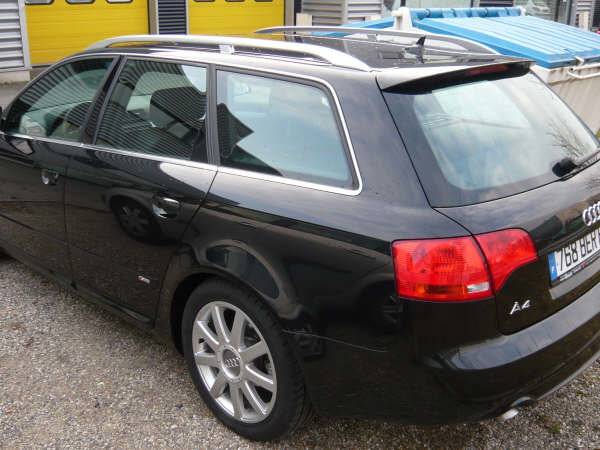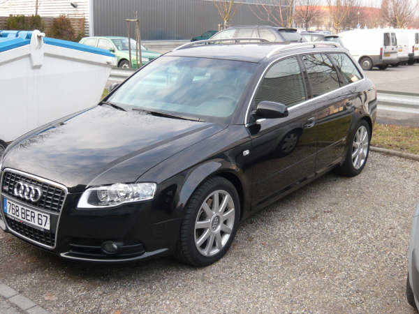 Bonjour à tous, Voilà je viens de faire l'acquisition d'une A4 170 S-Line(Allemande) de 03/08 avec 25000Km. Elle possède en plus de l'équipement de série: - Kit S-Line extérieur - le pack chrome - Prépa téléphone - sièges avt chauffants( c'est un pure bonheur par ces temps froids) - vitres arr électriques (option abusive vu le prix de départ) - GPS RNS-E avec l'ordi du compteur en couleur - radar de recul - régulateur de vitese Mes premières impressions, après les 600Km que j'ai fais pour revenir de Strasbourg(lieu d'achat), sont excellentes. Je n'ai pas ressenti la fatigue de la conduite, du pure confort... Par contre je trouve que les 170cv ne sont pas de trop pour le gabarit. Voila place aux photos... -