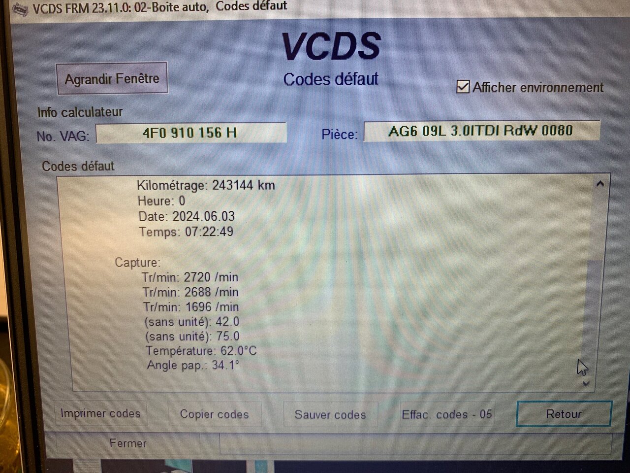 Bonjour Audimistes, Désolé pour le retard de ma réponse concernant le défaut sur la boîte. Donc passage de la valise, voici le défaut qui en ressort : Si cela parle à quelqu’un avant que je me lance dans une éventuelle vidange. Sam 😉 -