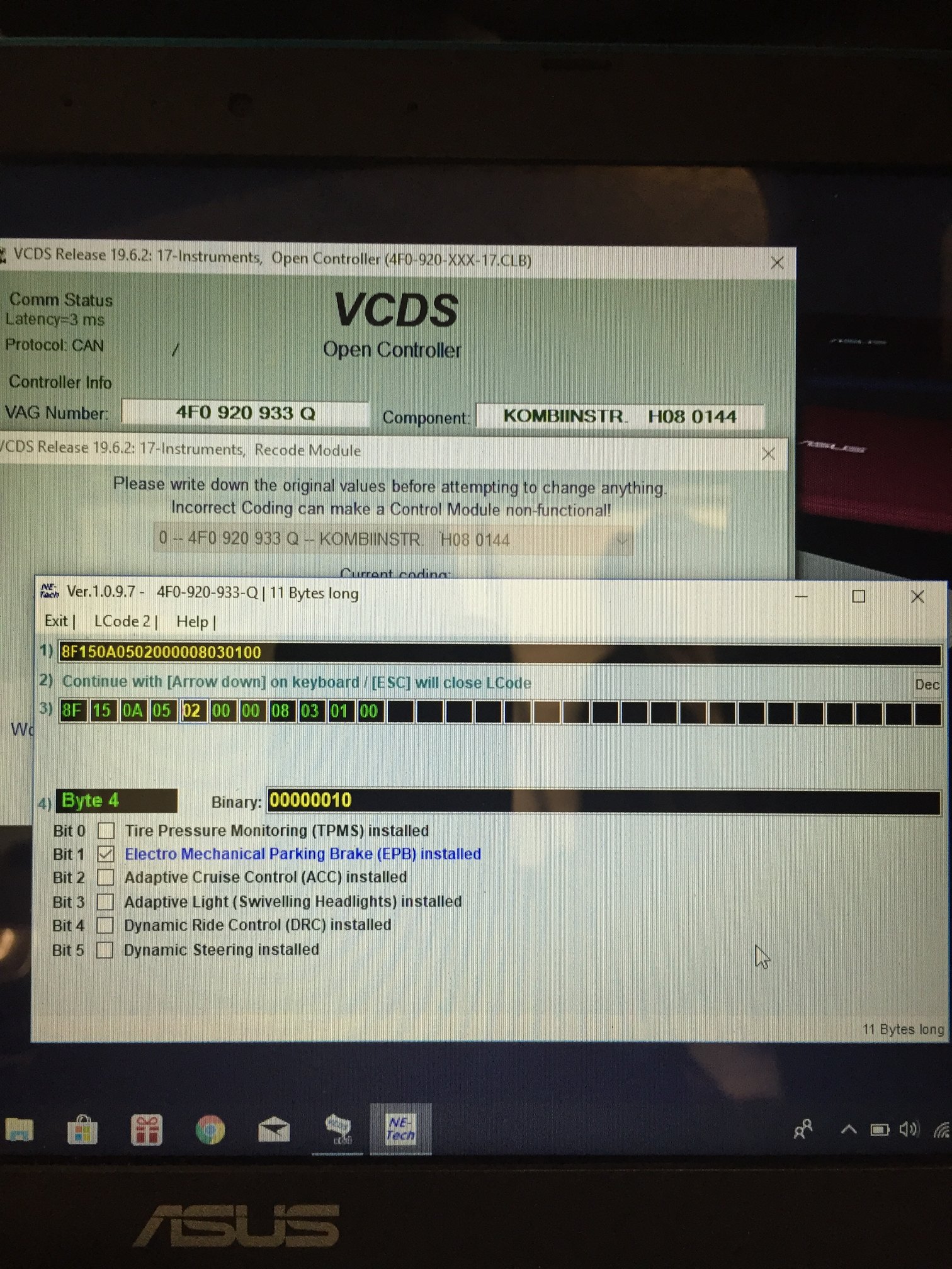 Prends des photos de chaque code comme j’ai fait. Ensuite tu fais des essais en cochant ou décochant des option de façon à retrouver ton long coding d’origine sans enregistrer mais en prenant une photo une fois chaque code trouvé. Ca permettra de voir ce que tu avais d’origine et de faire le comparatif avec ton long coding actuel. En fonction du résultat, si c’etait moi je ferais un essais avec ton long coding d’origine pour voir ce que ça donne. -