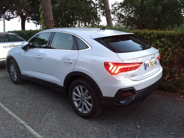Bonjour Possédant un Q3 de 2012, comme beaucoup je suis passé au Q3II, au debut mon choix s etait porté vers Q3II classique, puis la ligne m'a fait pencher vers le Q3II Sportback. Via mandataire, voiture commandée chez Audi en Espagne le 16 janvier, livree debut juillet. Remise -14% par rapport prix Audi Espagne, soit -15% par rapport prix Audi France Modele Q3 Sportback 35 TDI 150cv finition Advanced (equivaut Design ici) boite Stronic7 Assurance tout risque : 70 eur par mois chez Allianz De serie -hayon electrique -jantes doubles 18 -feu LED avec clignotants dynamiques AR -Audi smartphone Interface -Audi parking system -regulateur tempomat -direction assistee progressive -lane assist -prefront assist En option -pack Confort : retros electriques, banquette arriere plus, clé de confort, camera arriere, Audi Parking system plus, ouverture coffre au pied -couleur blanc glacier -son Bang Olufsen -regulateur adaptatif -camera 360 degres -Park assist plus (fait creneaux tout seul) -pack ambiance multicouleur -roue secours et cric -volant 3 branches a meplat -clim auto 3 zones au lieu de 2 -pack rangement -prises USB 2 a l AR, alume cigare coffre -extension garantie a 3 ans/60000km -assistant feux de route -inserts Alcantara marron Conso : voiture livree avec reservoir a moitié, conso 5,8 en moyenne a l ODB Ce qu j aime -boite auto toute douce et sans a coup -silence et agrement de conduite -directionprogressible, un confort sur autoroule, pas la sensation que la voiture flotte -Waze sur iPhone remplace parfaitement le GPS -le sans clé, on ne peut plus s en passer, surtout le coffre electrique qui s ouvre au pied -son BO correct, mais vaut pas le son Bose de mon salon -lumiere orange d angle mort, indispensable -coffre plus grand, et plancher amovible -banquette coulissante -camera 360 et parking system plus, bluffant d efficacité, meme ca nefait pas la meme trajectoire qu a mon habitude, mais au final, la voiture rentre pareil Ce qui me gene -Lane assist se met automatiquement, ca surprend quand on mord la ligne du bas coté et qu on a oublié de desactiver -regulateur adaptatif, ralentit automatiquement quand voiture devant plus lente, j aurais preferé qu elel garde la meme vitesse, quitte a change de file -ecran tactile trop sensible pour naviguer dans bibliotheque mp3, je preferais la molette plus precise que les menus deroulants -pour passer d un titre a l autre, le bouton étoile ne marche pas, il sert a passer de MP3 a la radio (j ecoute jamais) -pas de touche "titre suivant" pour les mp3 -rivet de la plaque immatriculation qui se balade dans le coffre et qui fait du bruit a chaque rond point -impossible de retirer appui tetes arriere qui genent la vue AR -j ai pas le Carplay sans fil !!!!!!!!!! Sans quoi je serais aux anges, d un autre coté ca recharge l iPhone, et rappel si j oublie le telephone a l arrivee -
