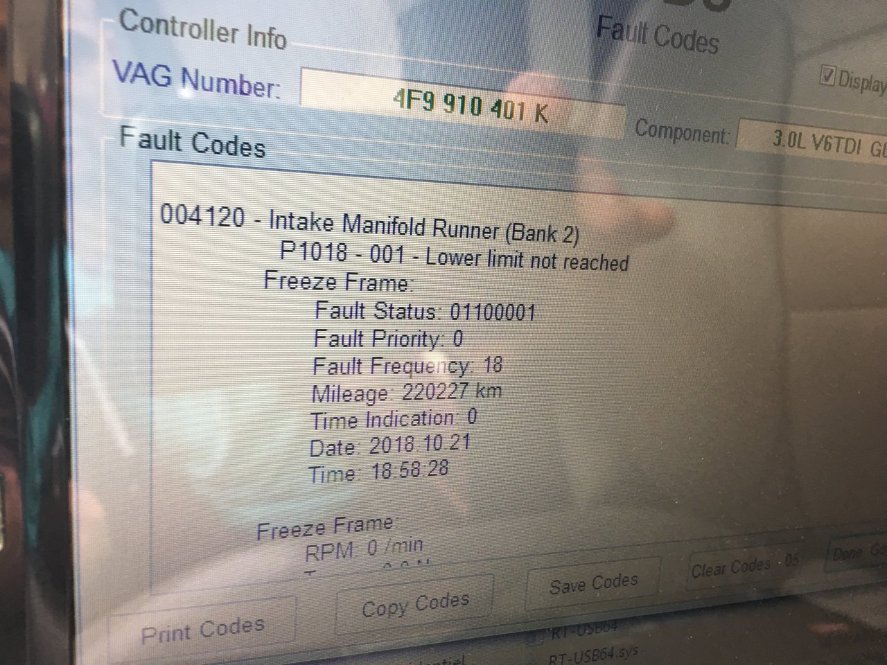 J ai le plaisir d'avoir mon voyant moteur d allumer sur mon allroad de fin 2007, passage au vcdd et comme beaucoup défaut tubulure admission: 004120 Intake manifold Runner (Bank2) P1018 -001- Lower limit not reached J'ai donc lu différents topics et j 'ai testé les groupes 36 et 37 pour connaitre l'origine moteur éteint 36 20,5% 20,9% 37 20,5% 89,2% au ralenti 36 80,9% 89,2% 37 80,9% 89,2% a 2000 trs 36 77,3% 89,2% 37 77,3% 89,2% a 3000 trs 36 20,5% 89,2% 37 20,5% 89,2% La grande question, est ce qu'un connaisseur pourrait m'éclairer sur l'origine joint? servomoteur ou autre Merci de votre aide