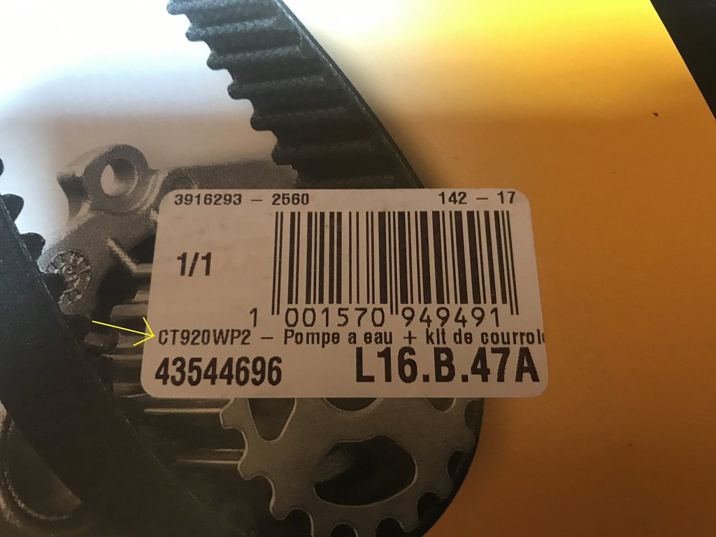 si ton moteur a le code BCY tu a la meme ref pour le kit complet avec pompe a eau . voici la ref avec code moteur BCY CONTITECH - CT920WP2 https://www.oscaro.com/pompe-a-eau-kit-de-courroie-de-distribution-contitech-ct920wp2-3127525-3096-p et moi j'ai pareil CT920WP2 -