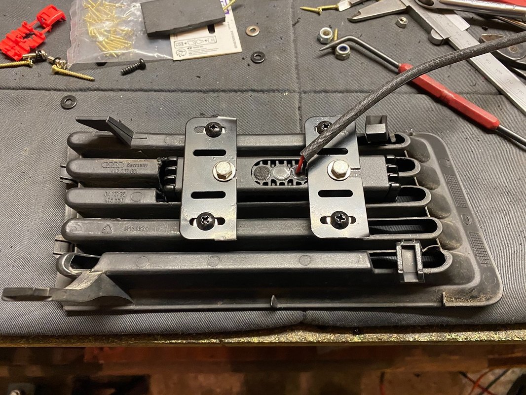 les vis sont provisoire , j'ai changé pour des plus courte et en noir et oui c'est un peu du système D pour la fixation car il faut adaptater la fixation qui est dans le kit avec l'endroit ou tu veut le mettre et sur nos A6/S6 les grilles sont pas les memes entre la gauche et la droite car une est ajourée alors que l'autre , non -
