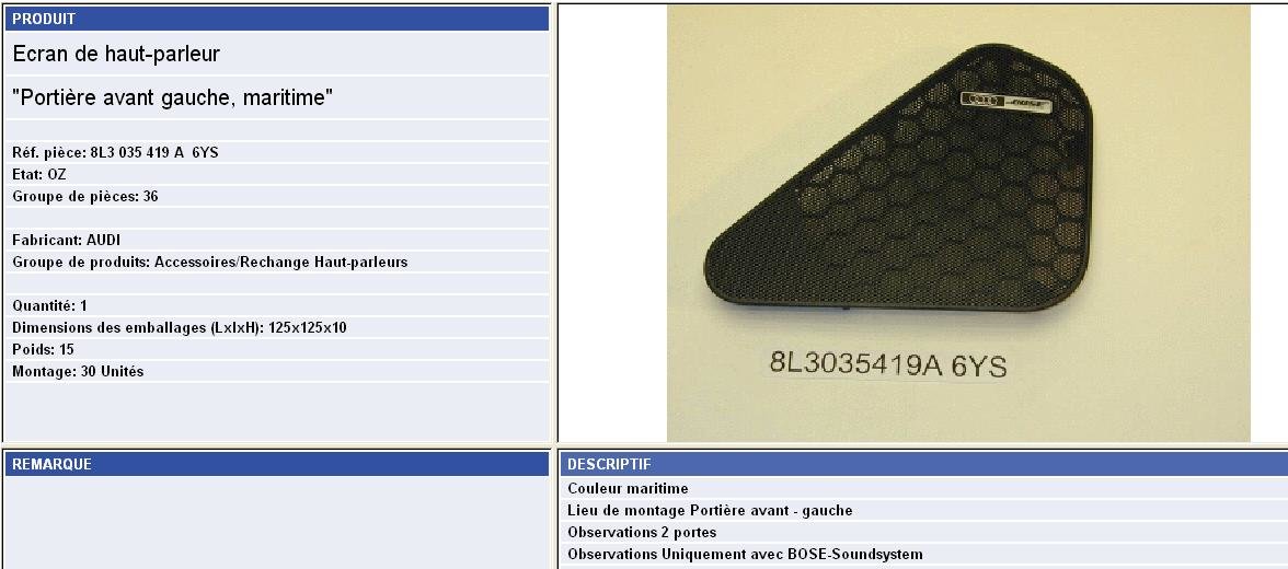 bonjour C'est quoi le référence sur la grille côté passager ? je peux regarder si j'ai cette référence et voire si l'on peux faire une correspondance avec celle côté conducteur. voilà