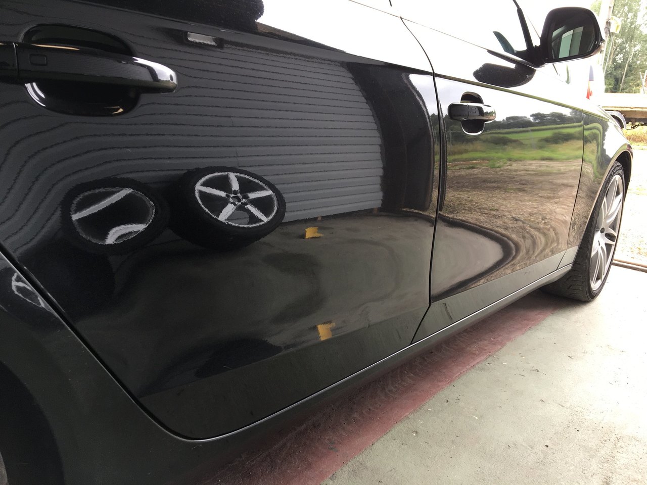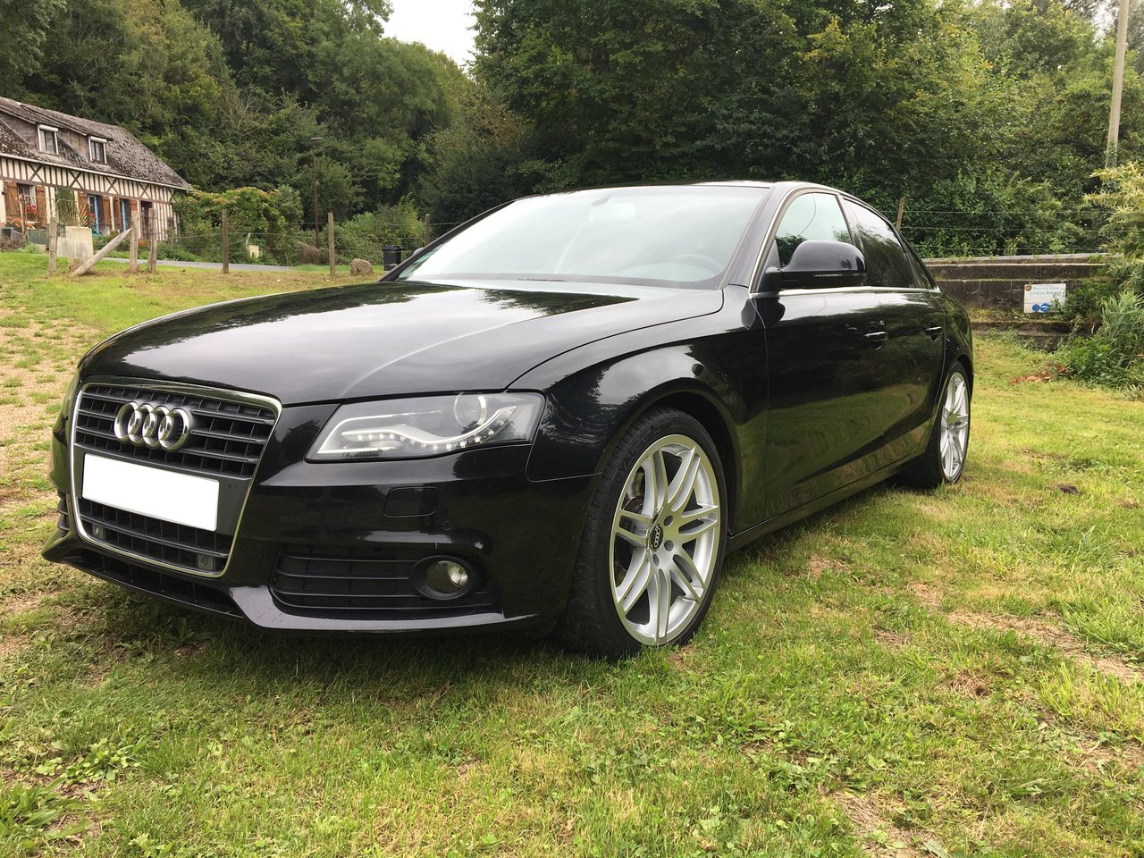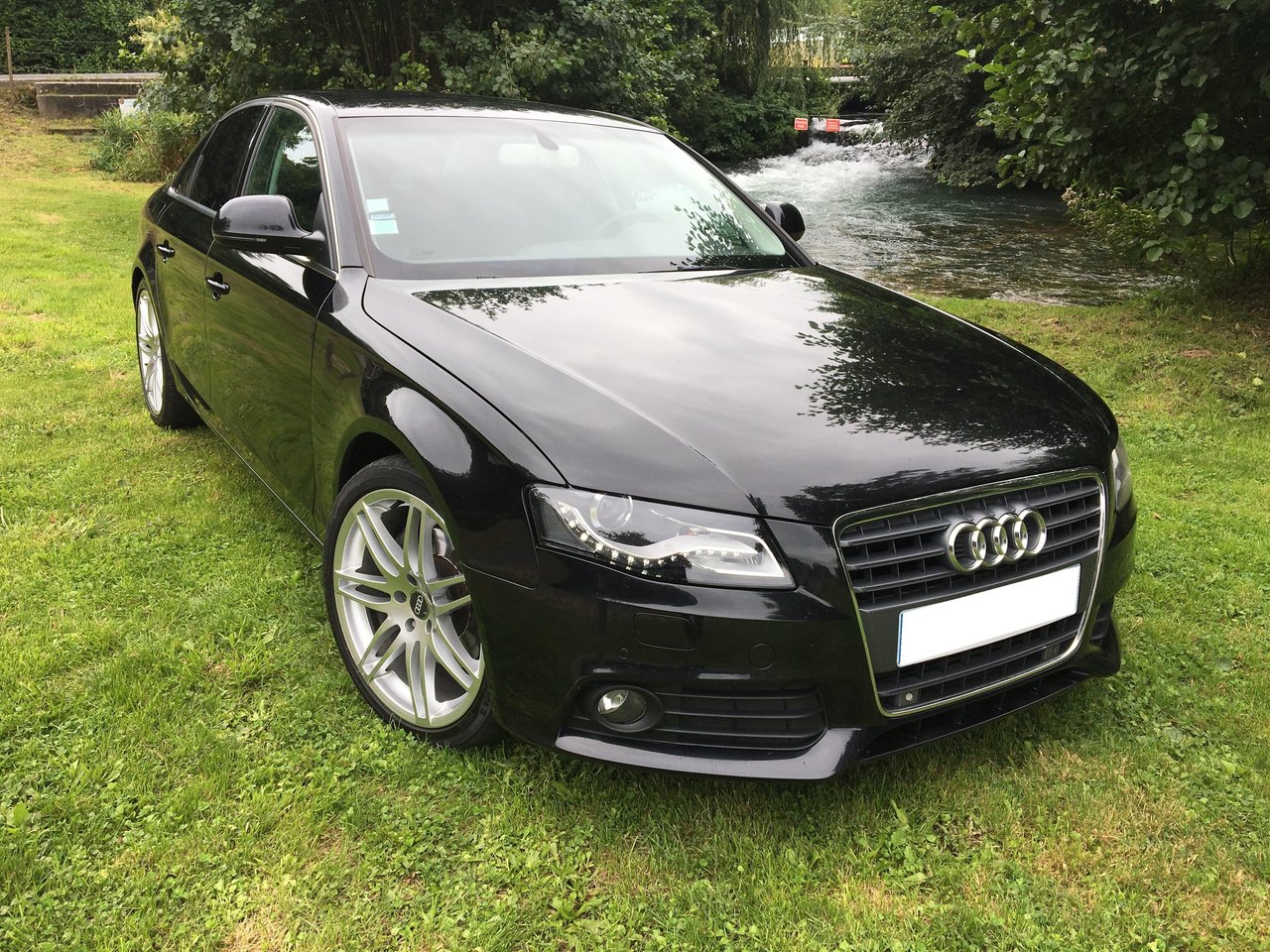 Bonjour a tous. Après une absence sur le forum depuis déjà quelque temps et la vente de mon a4 b7 à regret me revoilà avec un nouveau projet. Une nouvelle recette normande avec une nouvelle base, une a4 b8 2,7 v6 tdi 190 ch. Même si la base change je garde les mêmes ingrédients que mon ancienne. Le mariage du noir et du gris avec un saupoudrage de look rs et le tout assaisonné d’une belle rénovation esthétique (elle en a bien besoin !). Au programme. Peinture des éléments suivants car malheureusement trop de défauts pour être corrigé avec un polissage- peinture pare choc avant - peinture pare choc arrière- peinture aile avant droite et gauche-peinture portière arrière droite et gauche. Passage de certains éléments en gris. Peinture des étriers en rouge, teintage des feux arrière. Ensuite une grosse rénovation complète extérieure avec la pose d’un traitement céramique et l’intérieur auras le droit à une rénovation des cuirs avec une reteinte de certains éléments. Pour l’habillage depuis peu elle a reçu de nouvelles roulettes types rs4 en 19 pouces en remplacement des 18 d’origine, mais je l’espère un peu plus tard poser des 20 pouces. Pour l’arrière pose d’un nouveau diffuseur avec des sorties d’échappements et pose d’un béquet. Pour la face avant pose d’une nouvelle calandre type rs avec ces grilles d’antibrouillard. Un joli petit programme que je souhaitais faire depuis 2 ans mais par manque de temps car création d’entreprise (Centre de detailing) elle était malheureusement restée dans son état initial. Je vous rassure j’avais honte de rouler avec une voiture dans cet état et de plus pour un detailer c’est honteux. Il est temps qu’elle retrouve son éclat des premiers jours et un look plus agressif. Voici les photos de son état initial par la même occasion de mon centre. Je vous posterai des photos régulièrement de l’avancée de mon projet. Au plaisir de pouvoir a nouveau échangé avec vous.