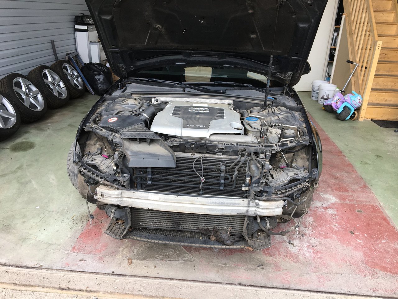 c'est parti j'attaque les hostilités démontage hier de la face avant. Je vais évidemment en profiter pour passé un gros coup de propre. Je précise que c'est un véhicule kilométré c'est aussi pour ça qu'elle est dans cet état . je précise également pour ceux qui serai choqué que je l'ai acheter comme çà il y a 2 ans dans le but de la remettre à neuve esthétiquement . je donnerai son kilométrage à la fin du projet. Voici quelques photos du démontage, des défauts présent et de sa remplaçante pendant son immobilisation . Le projet mettra certainement un peu de temps vu que j'ai des voitures clients aussi à m'occuper entre deux. -