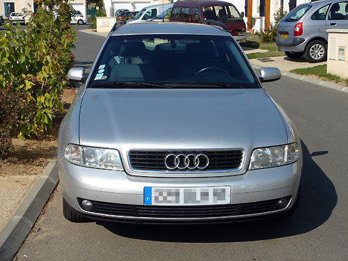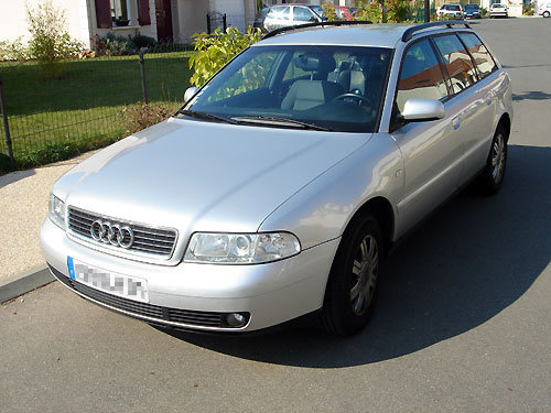 Bonjour, après plusieurs jours passés sur les Forums Audi-Passion en tant que lecteur, je tenais à remercier toute la communauté car grace à vous, j'ai pu me décider sur l'achat de mon Audi avec le budget que je m'étais fixé. C'est ma première Audi, et visiblement, le simple fait d'avoir mordu dedans, je suis foutu. Je ne l'aurais que mardi, et croyez moi, le temps est long. J'ai quelques questions en suspens, et j'en ferais part sur les topics appropriés. Je vous présente donc ma future (proche) A4 Avant 1,9 TDI 110Ch de 2000. Peut être un peu banale pour vous, mais moi je roulais en Peugeot. Vous imaginez donc mon impatience.