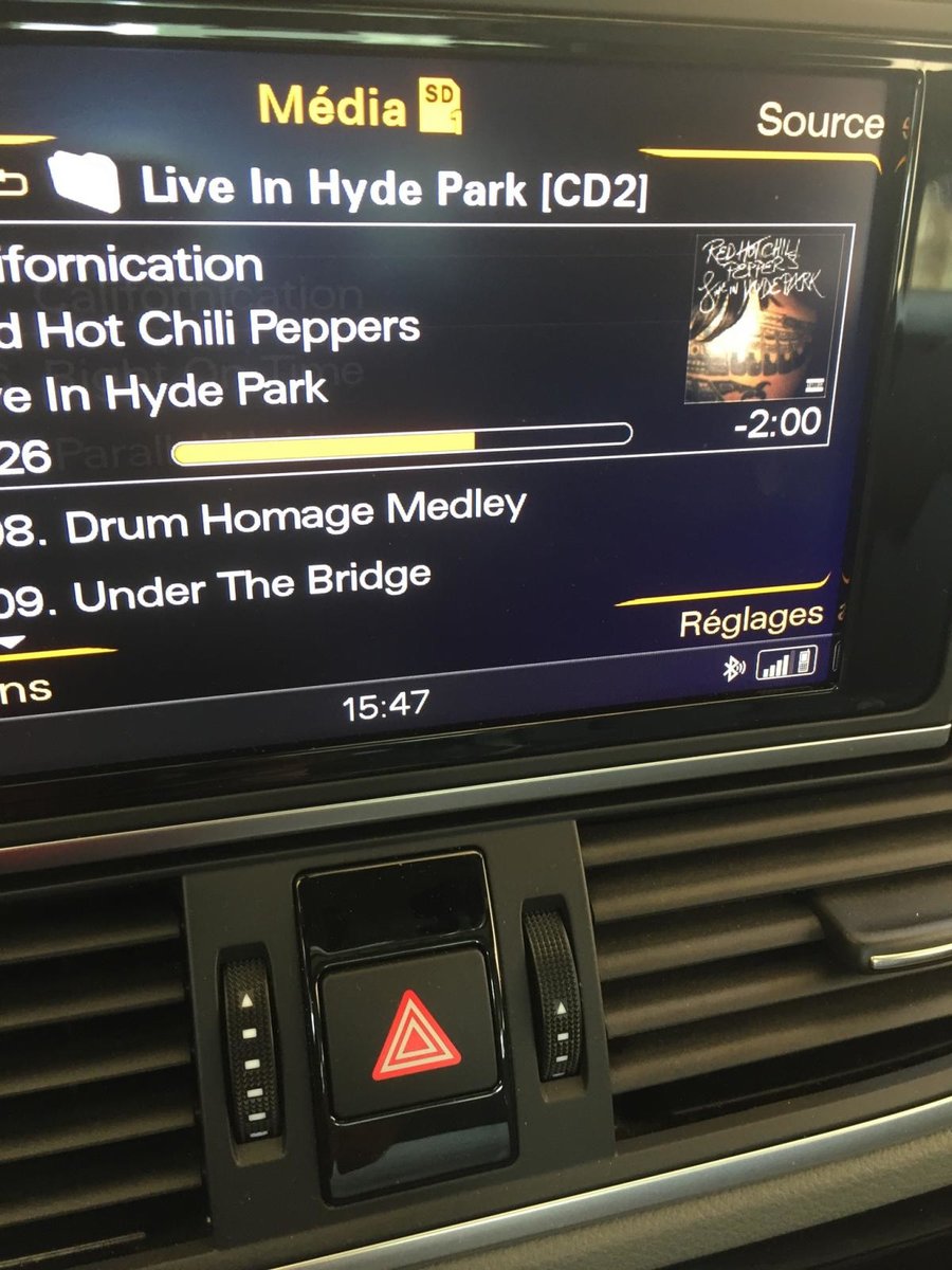 Bonsoir à tous, Après avoir converti un cd en mp3tag, je n'ai que cette vignette de la pochette du CD. Est-ce qu'il n'y a une possibilité ou un réglage pour avoir une vignette plus grand format sur le MMI ? Merci de vos reponses .