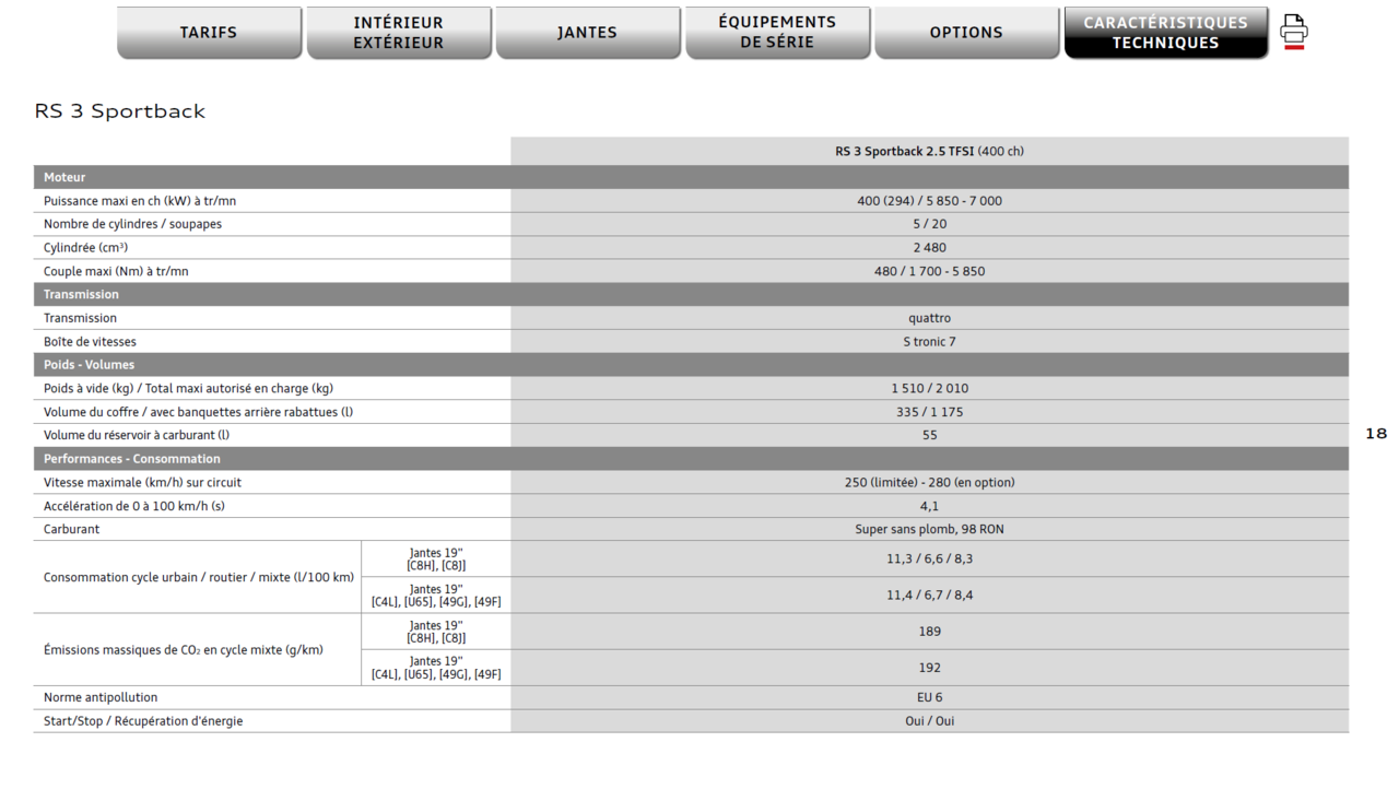 Hello Un possesseur de la nouvelle RS3 Sportback pourrait-il me donner les dimensions du cofre. J'ai trouvé sur les plans : - Largeur : 1000mm - Profondeur en bas : 775 mm Mais, il me manque : - Hauteur sous tablette - Profondeur sous tablette Merci