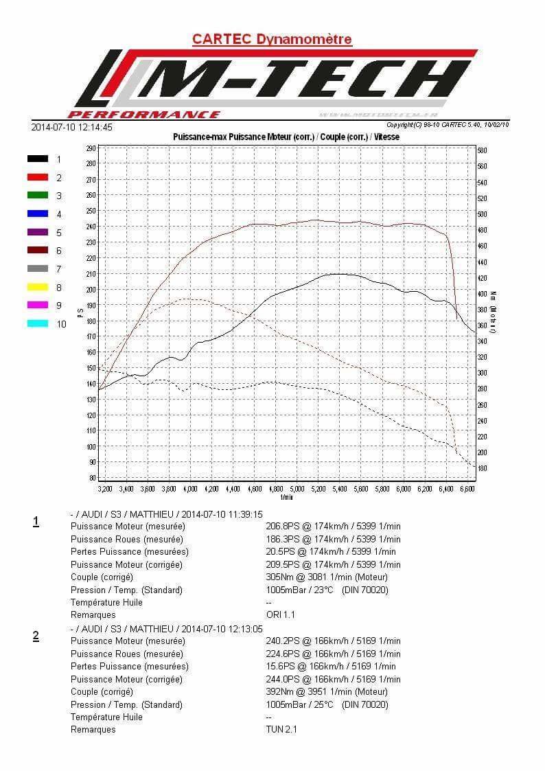 Je pense enfin avoir reussi a faire des logs. Dimanche,09,Avril,2017,14:38:50 8N0 906 018 J,,1.8L R4/5VT G 0004, ,Groupe A:,'002,,,,Groupe B:,'115,,,,Groupe C:, Non actif ,,Tr/min,Charge,Temps d'injec.,Débit massique,,Tr/min,Charge,Press. Absolue,Press. Absolue,,,,, ,Repère,,,,,Repère,,,,,Repère,,,, Marqueur,temps, /min, %, ms, g/s,temps, /min, %, mbar, mbar,temps,,,, ,0.03,3080,26.3,2.72,15.50,0.30,3080,26.3,920.0,950.0,,,,, ,0.60,3080,26.3,2.72,15.81,0.90,3160,69.2,1850.0,910.0,,,,, ,1.20,3280,92.5,8.84,67.64,1.51,3520,123.3,2350.0,1420.0,,,,, ,1.81,3800,161.7,14.28,135.78,2.11,4160,191.7,2320.0,2310.0,,,,, ,2.41,4560,191.7,18.02,170.42,2.71,4960,187.2,2310.0,2230.0,,,,, ,3.01,5320,181.2,16.66,180.61,3.33,5640,172.9,2100.0,2080.0,,,,, ,3.62,5960,171.4,15.30,190.83,3.93,6280,161.7,1840.0,1990.0,,,,, ,4.22,6520,154.1,13.60,188.36,4.54,6680,106.0,920.0,2060.0,,,,, ,5.45,6480,12.8,1.36,13.08,5.73,6400,12.8,920.0,1020.0,,,,, ,6.03,6320,12.8,1.36,15.92,6.33,6240,12.0,920.0,990.0,,,,, ,6.64,6160,12.0,0.00,14.75,6.95,6040,12.0,920.0,970.0,,,,, ,32.58,3480,106.8,9.86,84.22,32.28,3320,76.7,1510.0,1020.0,,,,, ,33.19,4120,185.7,16.32,163.67,32.88,3760,143.6,2360.0,1680.0,,,,, ,33.79,4960,188.7,17.34,174.25,33.49,4520,191.7,2310.0,2350.0,,,,, ,34.39,5640,173.7,15.98,187.75,34.09,5320,180.5,2230.0,2120.0,,,,, ,35.00,6280,158.6,13.94,193.00,34.69,6000,170.7,1910.0,2010.0,,,,, ,35.61,6800,122.6,9.86,150.81,35.31,6520,142.9,1670.0,2020.0,,,,, ,36.20,6760,12.8,1.36,8.97,35.91,6760,22.6,910.0,1440.0,,,,, ,60.35,3120,81.2,7.82,55.33,60.64,3280,105.3,2060.0,1240.0,,,,, ,60.96,3520,137.6,12.24,108.94,61.25,3800,177.4,2330.0,2100.0,,,,, ,61.55,4160,191.7,18.02,163.86,61.85,4560,191.7,2300.0,2330.0,,,,, ,62.15,4960,187.2,16.66,174.25,62.45,5280,180.5,2230.0,2160.0,,,,, ,62.76,5600,175.2,15.30,187.44,63.06,5880,169.9,1960.0,1990.0,,,,, ,63.36,6120,164.7,14.28,191.78,63.67,6400,153.4,1400.0,1940.0,,,,, ,63.96,6440,38.3,3.06,6.81,64.26,6360,12.0,910.0,1240.0,,,,, ,64.57,6280,12.8,1.36,10.53,64.87,6200,12.8,910.0,1050.0,,,,, Dimanche,09,Avril,2017,14:41:10 8N0 906 018 J,,1.8L R4/5VT G 0004, ,Groupe A:,'002,,,,Groupe B:,'115,,,,Groupe C:, Non actif ,,Tr/min,Charge,Temps d'injec.,Débit massique,,Tr/min,Charge,Press. Absolue,Press. Absolue,,,,, ,Repère,,,,,Repère,,,,,Repère,,,, Marqueur,temps, /min, %, ms, g/s,temps, /min, %, mbar, mbar,temps,,,, ,4.51,2920,94.7,8.84,61.33,4.80,3000,119.5,2310.0,1390.0,,,,, ,5.10,3120,145.1,14.62,97.81,5.40,3240,173.7,2340.0,2060.0,,,,, ,5.70,3440,191.7,20.40,143.17,6.01,3600,191.7,2330.0,2520.0,,,,, ,6.31,3800,191.7,22.44,148.19,6.61,3960,191.7,2330.0,2460.0,,,,, ,6.91,4160,191.7,20.74,160.11,7.21,4320,191.7,2310.0,2400.0,,,,, ,7.51,4480,191.7,20.06,166.64,7.82,4680,190.2,2300.0,2310.0,,,,, ,8.12,4840,186.5,19.04,172.33,8.42,4960,184.2,2300.0,2180.0,,,,, ,8.72,5120,183.5,18.02,177.67,9.02,5280,176.7,2230.0,2130.0,,,,, ,9.32,5440,178.2,17.68,184.11,9.63,5560,175.2,2170.0,2080.0,,,,, ,9.93,5720,175.2,17.68,186.53,10.24,5880,171.4,2100.0,2010.0,,,,, ,10.53,6000,161.7,16.32,190.83,10.83,6120,160.9,2050.0,2050.0,,,,, ,11.13,6240,160.9,15.98,192.56,11.44,6360,156.4,1920.0,1970.0,,,,, ,11.74,6480,152.6,16.66,190.61,12.04,6600,147.4,1330.0,2020.0,,,,, ,12.34,6600,39.8,4.08,13.72,12.64,6480,12.0,910.0,1230.0,,,,, ,12.95,6480,12.8,1.70,12.36,13.25,6440,12.8,910.0,1040.0,,,,, ,23.20,3320,133.1,12.92,98.86,22.90,3200,102.3,2340.0,1220.0,,,,, ,23.81,3720,191.7,19.38,153.14,23.50,3520,169.2,2340.0,2000.0,,,,, ,24.41,4120,191.7,20.40,157.61,24.11,3920,191.7,2330.0,2480.0,,,,, ,25.01,4520,191.7,20.06,168.25,24.71,4320,191.7,2310.0,2390.0,,,,, ,25.62,4880,188.0,19.38,175.47,25.32,4680,191.7,2300.0,2270.0,,,,, ,26.22,5200,182.7,19.04,175.94,25.92,5040,184.2,2280.0,2210.0,,,,, ,26.82,5520,174.4,18.70,184.42,26.52,5360,178.2,2230.0,2120.0,,,,, ,27.43,5800,168.4,18.02,189.58,27.12,5680,175.9,2140.0,2030.0,,,,, ,28.03,6080,166.2,18.02,192.39,27.73,5960,166.2,2080.0,2020.0,,,,, ,28.64,6320,162.4,17.68,191.00,28.33,6200,158.6,2030.0,2000.0,,,,, ,29.24,6520,151.1,17.00,190.53,28.94,6440,154.1,2000.0,1970.0,,,,, ,29.84,6720,149.6,17.68,192.39,29.55,6640,153.4,1970.0,1940.0,,,,, ,30.45,6720,68.4,6.80,12.42,30.14,6800,147.4,1890.0,2000.0,,,,, ,41.32,3040,114.3,11.22,77.53,41.62,3160,138.3,2340.0,1650.0,,,,, ,41.91,3320,166.9,16.32,118.50,42.21,3480,191.7,2330.0,2390.0,,,,, ,42.50,3640,191.7,21.08,148.28,42.82,3840,191.7,2310.0,2510.0,,,,, ,43.12,4040,191.7,20.74,152.56,43.42,4240,191.7,2300.0,2400.0,,,,, ,43.72,4400,191.7,20.06,161.33,44.02,4560,191.0,2280.0,2330.0,,,,, ,44.32,4760,187.2,19.38,168.25,44.63,4920,185.7,2280.0,2230.0,,,,, ,44.93,5080,182.7,19.04,175.94,45.23,5240,179.7,2230.0,2130.0,,,,, ,45.53,5360,173.7,18.36,179.86,45.83,5520,174.4,2160.0,2110.0,,,,, ,46.13,5680,172.2,18.70,185.31,46.44,5800,169.2,2100.0,2070.0,,,,, ,46.74,5920,164.7,17.34,188.36,47.04,6040,163.9,2040.0,2040.0,,,,, ,47.34,6160,158.6,16.66,189.28,47.64,6240,154.1,2020.0,2010.0,,,,, ,47.94,6360,155.6,17.34,189.92,48.25,6480,152.6,1980.0,2000.0,,,,, ,48.55,6560,148.9,16.66,190.53,48.85,6560,36.8,910.0,1820.0,,,,, ,49.16,6480,12.0,1.70,3.81,49.46,6400,12.8,910.0,1110.0,,,,, Dimanche,09,Avril,2017,14:43:31 8N0 906 018 J,,1.8L R4/5VT G 0004, ,Groupe A:,'003,,,,Groupe B:,'031,,,,Groupe C:, Non actif ,,Tr/min,Débit massique,Charge,Tempo. injection,,Facteur lambda,Facteur lambda,Bits,Bits,,,,, ,Repère,,,,,Repère,,,,,Repère,,,, Marqueur,temps, /min, g/s, %, °ApPMH,temps,,,,,temps,,,, ,0.30,3240,74.69,100.0,25.5,0.03,0.984,0.992, , ,,,,, ,0.90,3840,148.92,100.0,12.0,0.60,0.977,0.992, , ,,,,, ,1.51,4640,170.17,100.0,15.0,1.20,1.023,0.992, , ,,,,, ,2.11,5400,182.61,99.6,13.5,1.81,1.000,0.992, , ,,,,, ,2.72,6040,175.81,40.0,18.0,2.41,0.992,0.992, , ,,,,, ,3.33,6480,119.78,35.3,30.0,3.03,0.953,0.992, , ,,,,, ,3.93,6480,10.22,9.4,9.0,3.62,0.922,0.992, , ,,,,, ,4.53,6360,15.22,10.2,8.3,4.23,0.977,0.969, , ,,,,, ,62.47,3240,56.89,89.8,28.5,62.76,0.961,0.992, , ,,,,, ,63.06,3680,113.89,100.0,19.5,63.36,0.984,0.992, , ,,,,, ,63.66,4