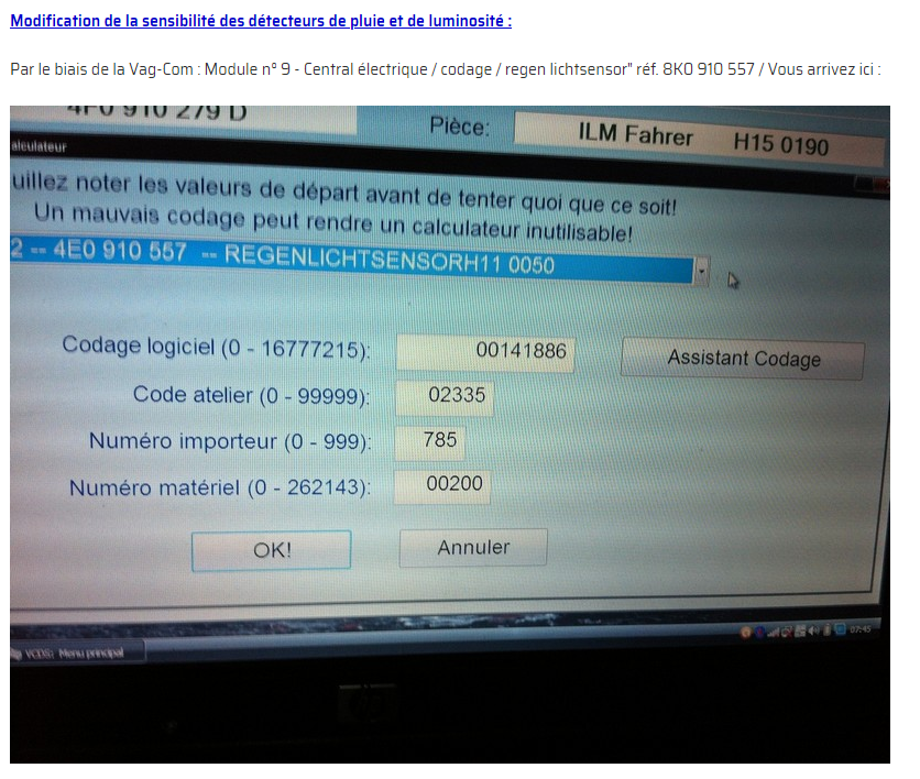 tu as les mêmes réglages possibles pour le capteur de luminosité... par contre je ne sais plus où c'est sur la vag-com. J'avais réduit la mienne afin d'éviter que mes xénons s'allument à la moindre "sombritude" Ils n'aiment pas les allumages répétés et successifs. -