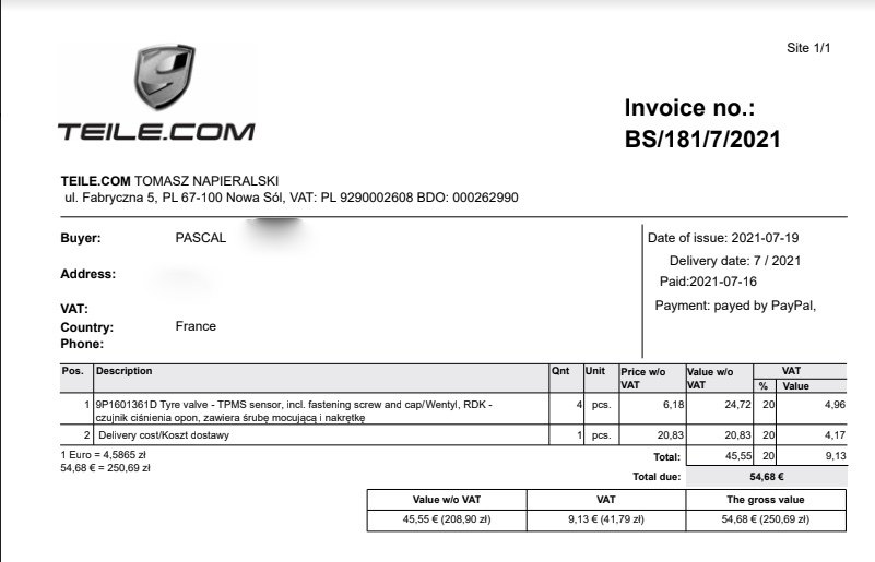 Valves et capteurs reçus de chez Teile montage le 12 Aout prévu .