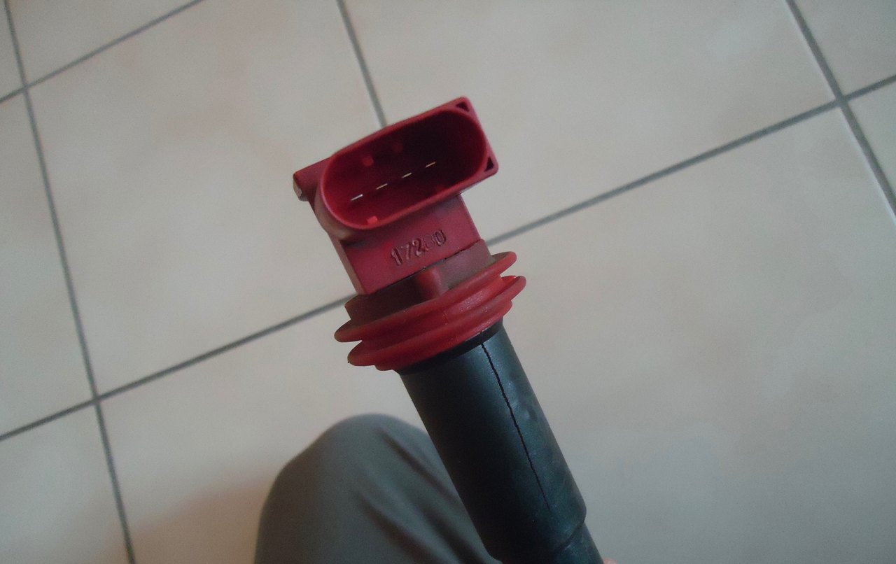 Les 8 bobines sont commandées Les bougies sont remplacées . Etonnamment la bobine qui présentait la plus mauvaise allure n'est pas la bobine qui caussait le défaut de ratés de cylindre . On va tout remplacer pour repartir sur une base saine et durable . bobine n°7 fissurée et datant de 2010