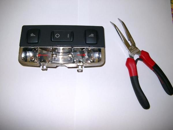 Salut à tous, pour ceux qui n'osent pas démonter leur plafonnier, voila une petite photo. il faut tirer sèchement sur les points indiqué avec les flèches rouges et si possible avec une pince à bec fin. le faux contact ne vient pas forcement de la prise, mais des multiples contact et du jeu de la platine. Désolé pour la deuxieme photo...... Je vous déconseille de faire comme moi, parce qu'une une fois que vous avez ôté les 4 pastilles qui retiennent la platine transparente c'est coton à refixer sur son support. :furious: Avis aux bricoleurs,si vous démontez vous verrez vite d'où vient le problème. :coucou: -