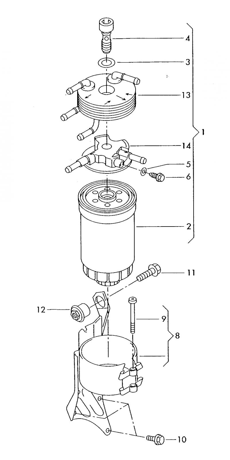 Lors de ma dernière vidange, mon garagiste m'indique qu'il n'a pas pu changer le filtre à gasoil car la vis qui le maintient est foirée (vis 4). Il m'annonce qu'il faut changer tout le bloc 1 !