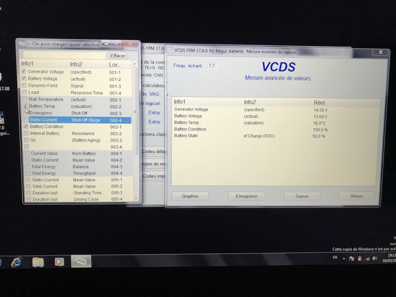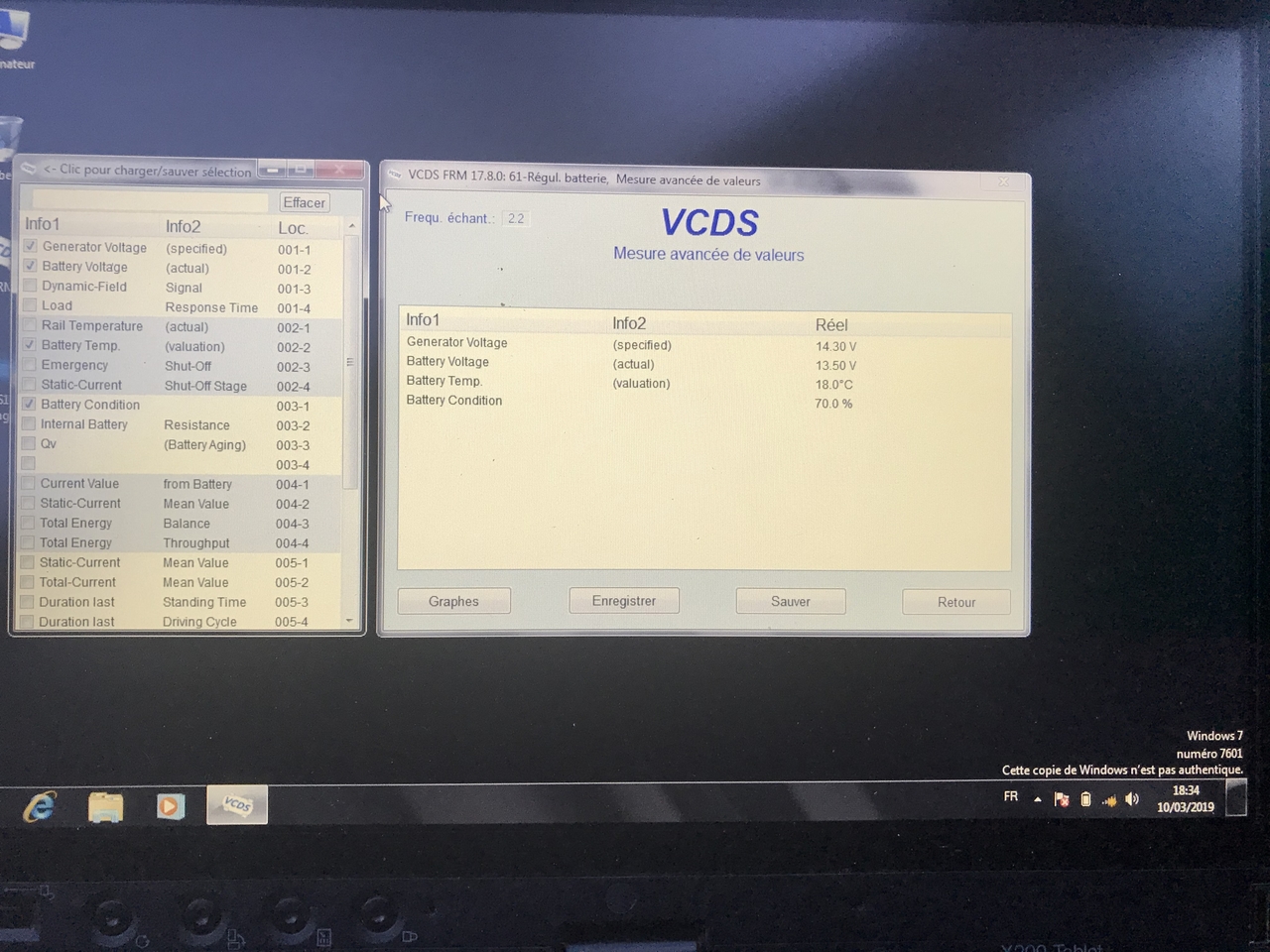 Quelqu’un c’est ou je vais dans le vagcom svp pour tester le voltage de l’alternateur ? -