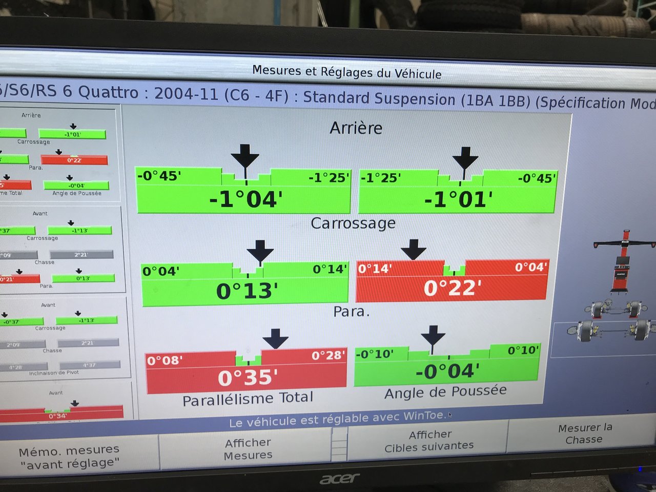 Bonjour bonsoir ce samedi matin changement des pneux avec une géo, petit rectification pour les pneux, j’ai fait 47000 kms avec 2 et 37000 kms avec les 2 autres. Oui je sais grâce au forum qu’il faut changer les 4 en même temps, mais quand J’ai acheté Tiger, je ne s’avais pas et j’avais pas trop de sousou pour changer les 4 en même temps. Sur les photos vous verrez bien la différence, j’ai fais une géométrie en plus pour repartir sur de bonne base, c’était l’arrière droit qui avait un carossage mauvais. Du coup je suis passé sur Michelin pour voir si je peut faire plus de 40000kms comme avec Brigestone. Je ferais une permutation tous les 10000 de l’avant et l’arrière, elle la 254350kms. photos des anciens. Photo du nouveau pneu Michelin Petit nettoyage jantes L’emplacement de la vis pour régler le carrossage et le raport avant après -