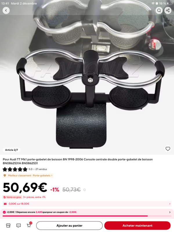 c'est dommage de modérer mon message original en car vous effacez quelques infos intéressantes. Sur aliexpress on trouve parfois des produits, souvent inutiles et donc indispensables. Et souvent on y trouve des produits géniaux que les officiels sont pas eus l'idée. -