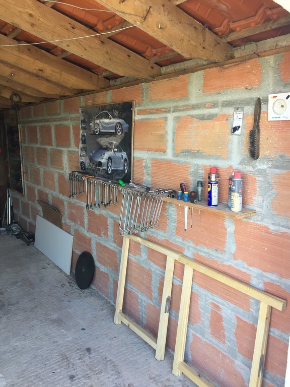 Sinon je commence à mettre des photos de l’avancée des travaux. J’ai décidé de sortir complètement le moteur pour être plus à l’aise. Au passage nettoyage complet sera fait. Dàbord je vous présente mon garage, moins grand que certains mais un minimum fonctionnel. le minimum necessaire en outillage, ainsi que des petites boîte à embouts torx, xzn (multi-pans), ribe, etc. Une clé à chocs électrique payé 45 euros et qui fait du bon taf quand on a besoin. -