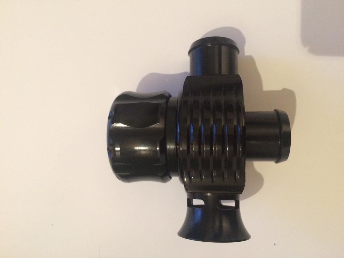 Étant de repos aujourdhui jai creusé un peu voir doù peu venir le problème de trous et le ralenti qui oscille suite au remplacement du débitmètre. Jai trouvé la coupable... ma dump valve (non origine). Je mexplique: la partie haute (sur la photo) est le côté recyclage, la partie basse le pschitt. En fait même quand le piston est fermé le corps est tout le temps ouvert entre les deux. Donc au ralenti ou quand on accélère lair extérieur est aspiré via la partie en cône! Du coup cest comme une grosse prise dair ! -