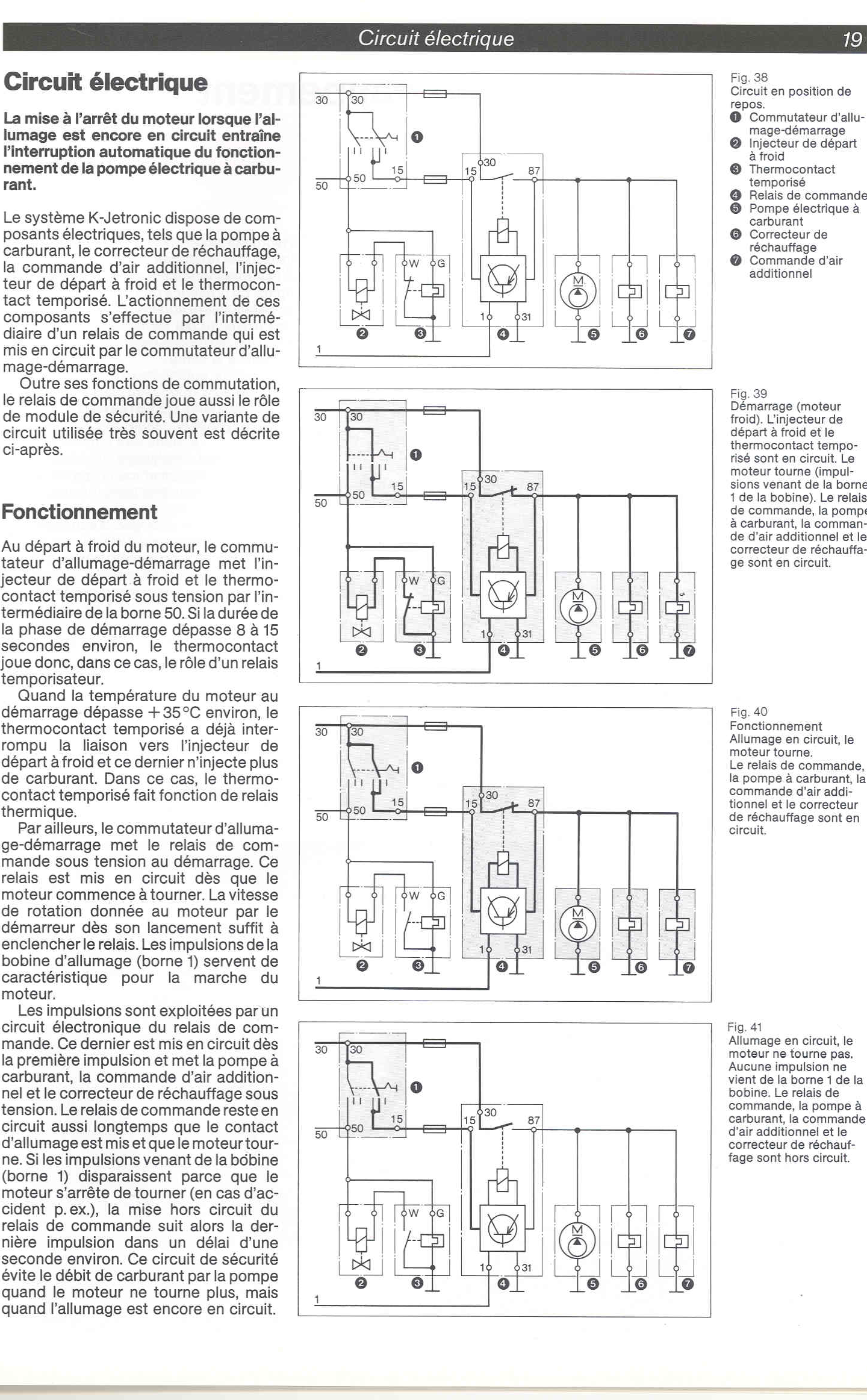 en cas de mauvais fonctionnement il faut vérifier la partie injection et changer les pièces qui risquent de pertuber la bonne marche car les différents organes du ke jetronic doivent fonctionner en harmonie 1) reservoir à carburant 2) pompe electrique 3) accumulateur de carburant 4) filtre à carburant 5) correcteur de chauffage 6) les injecteurs 7) collecteur d'admission air(grosse durite gauffrée) 8)injecteur de départ à froid 9)régulateur de pression 10) doseur distributeur(plateau sonde) 11) thermo contact temporisé 12) commande d'air additionnel 13) contacteur de papillon 14) relais de commande 15)centrale de cde electronique 16) sonde lambda je te dis ça en connaissance de cause car quand j'ai acheté la mienne ,je n'ai pas pris le temps de tout regarder et j'ai eu des pannes à répètition démarrage à chaud impossible, trou en accélèrant,mauvais ralenti, consommation exagérée , je ne parle que de la partie injection l'allumage doit bien réglé également -