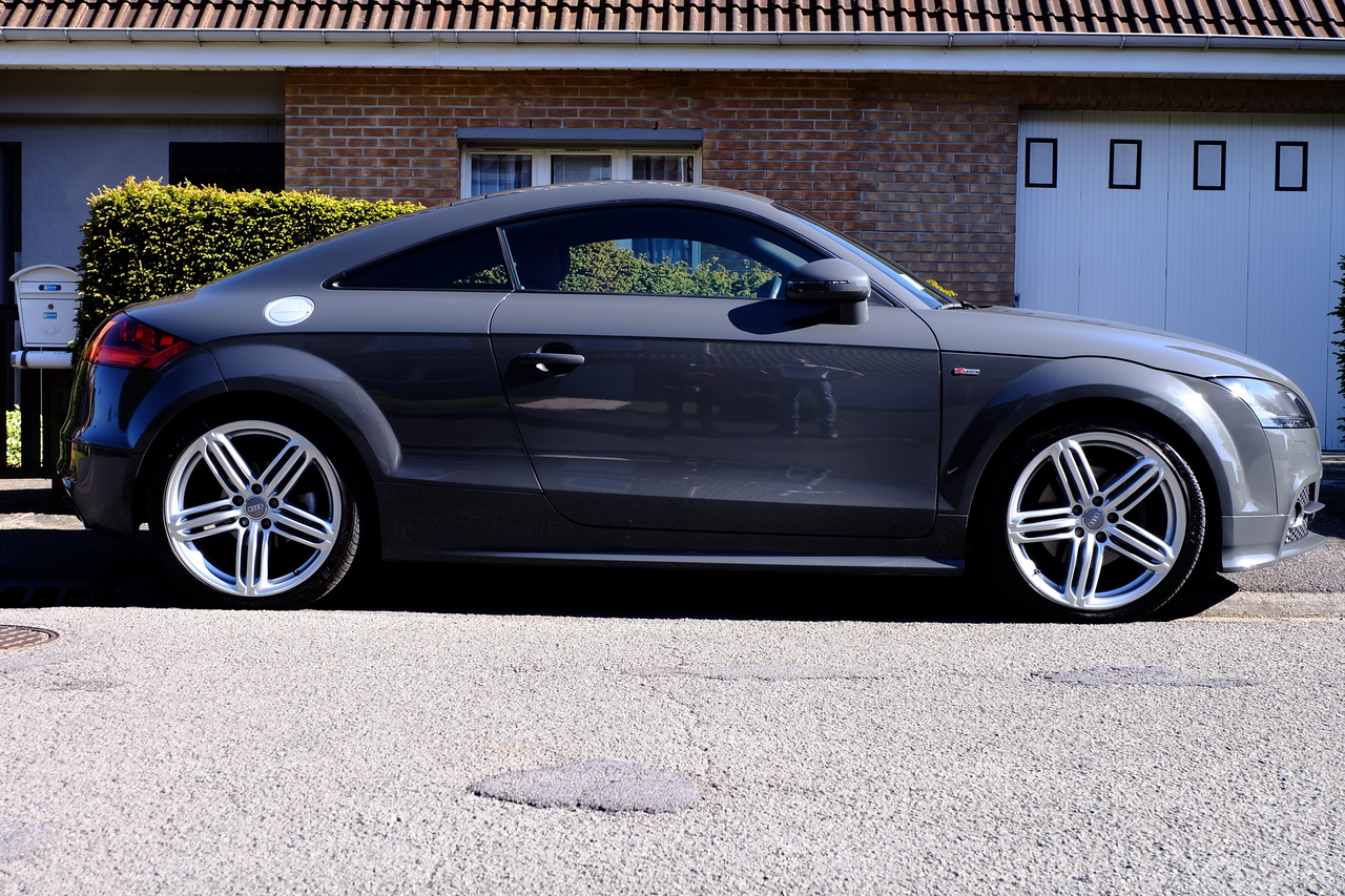 Bonjour, Après 5 ans en TT mk1, je prends le temps de vous présenter ma nouvelle acquisition : une audi TT MK2 2.0 TFSI de 2013. Mon choix s'est porté sur ce modèle avec une belle combinaison au niveau de la carrosserie / intérieur. J'aime bien sur cette version le diffuseur avec sorties latérales Voici les options dont elle dispose : Couleur à la carte. Je pense que cela doit être gris nano Jantes Quattro Gmbh 19 " Intérieur cuir rouge nappa fin Sièges Chauffants Pack confort : régulateur et aide au stationnement Pack Alu Pack Led Port USB Audi Concert Phares Xénon Plus Rétroviseurs Rabattables électriquement Alarme Je dois en oublier Ce week end, si j'ai le temps, je m'attèle à poser une cire céramique pour protéger la carrosserie A +