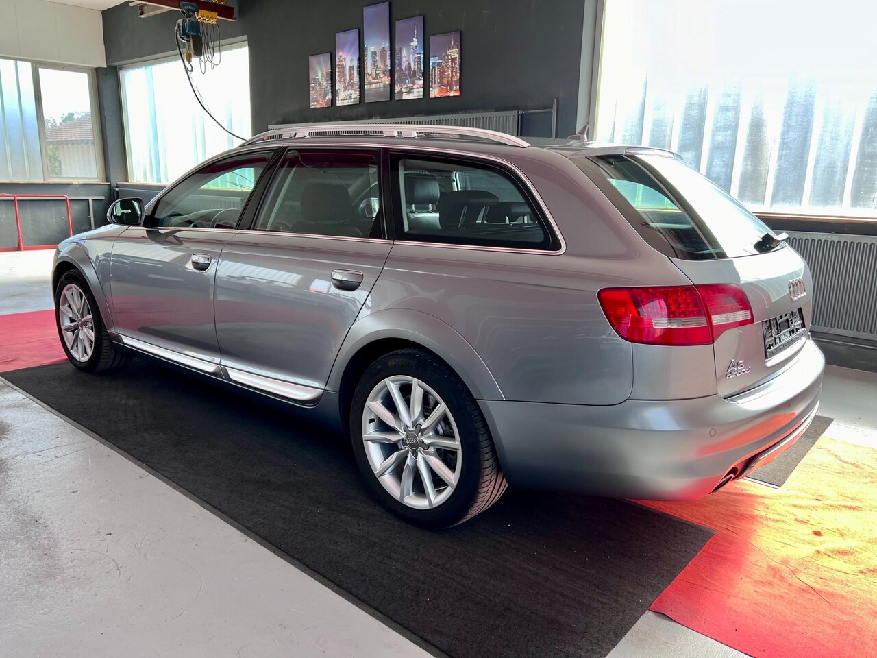 Bonjour à tous, Les voitures changent, mais pas la passion. Par raison et nécessité au regard de mon projet immobilier, j'ai revenu la S4 B8 manuelle avant la date prévue. Je vous présente donc la nouvelle qui est une A6 C6 (4FH) ALLROAD version 3.0 TDI 240cv du 27/09/2011 (1ère immatriculation). Je n'ai pas encore trouvé comment déterminer la date de sortie d'usine mais il y a fort à parier qu'elle fasse partie des toutes dernières produites sur la chaîne d'assemblage. Données techniques : Type châssis 4FH - V6 TDI code moteur CDYA - 240cv / 500 Nm. Kilométrage : 127125 kms à l'achat (+930 kms de retour Allemagne) - Carnet d'entretien full AUDI à jour. Equipements (options et série) : Sièges en cuir sport AV chauffants ; Volant sport avec palettes S-Line ; MMI 3G high ; Hayon électrique ; Pack électrique AV / AR ; Pack famille avec stores pare-soleil intégrés portes AR + hayon de coffre ; JA 18 pouces ; Clim automatique ; Suspensions pneumatiques "Allroad" ; AMI + chargeur CD ; Etc... Photos : Dès que la météo et mes contraintes le permettent, je referai des clichés de mon tank. En attendant, voici celles de l'annonce : Ce matin, elle a eu droit à sa première modif : le déssiglage du hayon AR. Merci à vous. Totor443