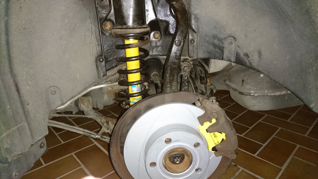 Voilà après pas mal de temps à m occuper de ma maison et maintenant que je posséde un vrai garage j ai prit le temps de commander des amortisseurs neuf bielstein B6 et plaquette EBC jaune pour le S4 il faut aussi que fasse les joints de cache culbuteurs aussi, mais j ai le temps la voiture est à l abrit !!! Je fais ça tranquillement petit à petit, l arrière est terminé je commence l avant, j ai juste eu une vis de support d étrier complètement grippé et avec une empreinte allen de 8 c'est pas terrible pour forcer, j ai du chauffer et lui faire une tête au carré !! et commander une nouvelle vis chez audi. Quelques photos :
