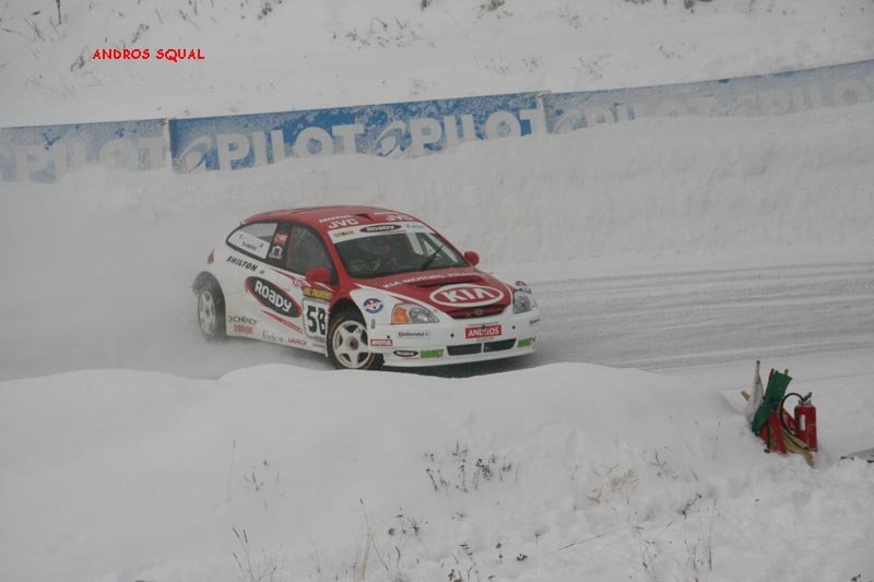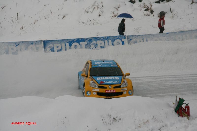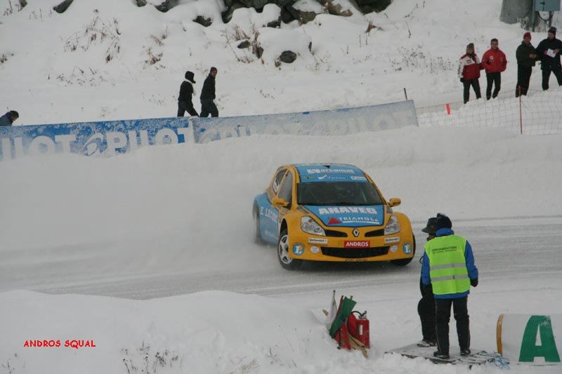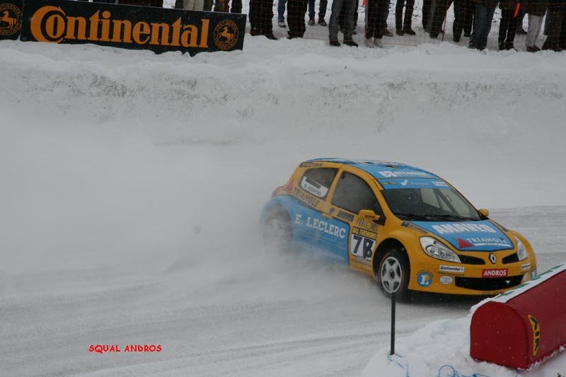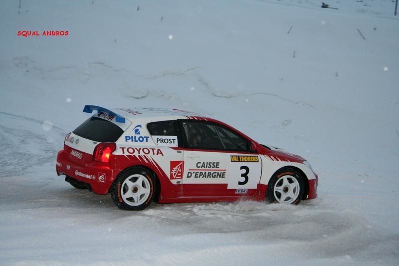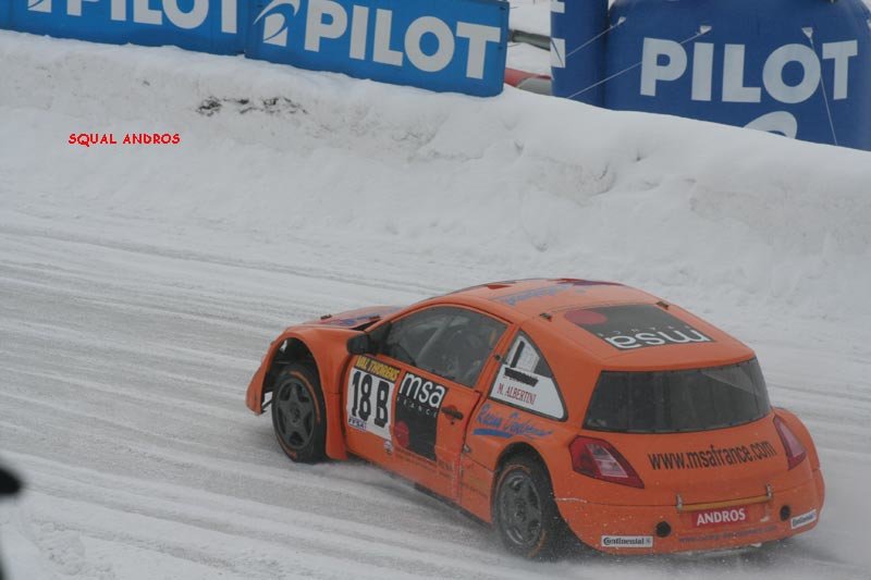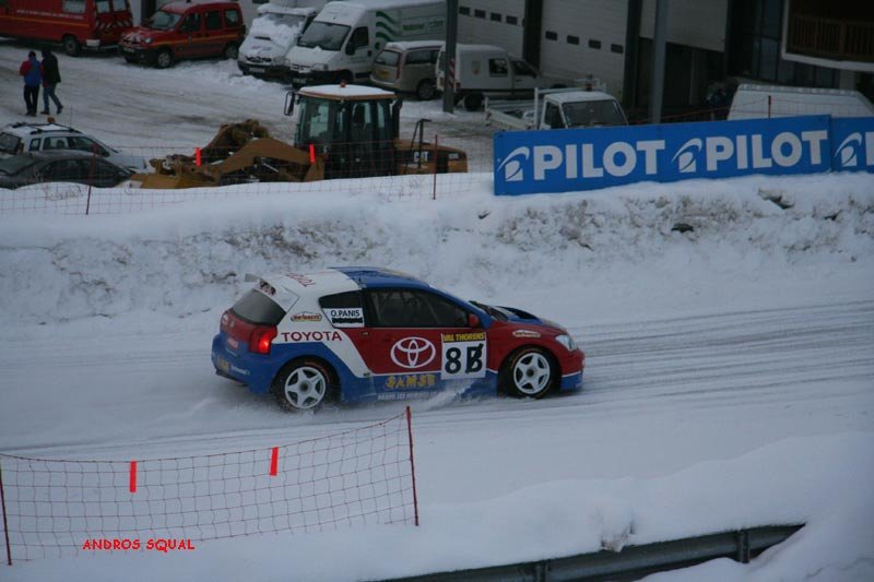 voici le résumé des epreuves 1ère journée 2 ème journée Première Journée ESSAIS 1 Quelques flocons, un ciel gris et des montagnes d'un blanc immaculé : le décor est planté pour les premiers tours de piste à Val Thorens. Parti dans les premiers, Balas joue avec brio son rôle de moniteur pour le débutant célèbre qui partage le volant de sa Toyota Corolla. C'est de Panis qu'il s'agit, et il s'en sort à son avantage, ne concédant qu'une seconde au tour à son " professeur ". Mais c'est à Prost que ce surnom va le mieux: un seul tour de piste lui suffit pour signer le meilleur tour au volant de la Corolla numéro 3. Une manière adroite de gérer son capital pneus réduit cette saison de 8 à 6 unités par week end. Voiture débutante, la BMW " série une " n'a besoin que de deux tours aux mains de Dayraut pour rejoindre en première série les deux pilotes Toyota en compagnie de Thoral, très en verve sur sa Seat Leon privée. Chez Fiat, c'est De Korsak qui a trouvé le meilleur rythme pour rejoindre Muller en seconde série. Avec sa Kia lestée de 40 kilos, Yvan, sans doute soucieux de ses pneus, privilégie la précision sur l'attaque. Bons débuts pour les Clio III, Fouquet se plaçant avec celle de l'équipe AMV entre les Parisiens Stere et Lanctuit, qui se relaient dans celle de Sport Garage. En promotion, le jeune débutant Grosset-Janin est déjà second derrière la Seat Leon de l'expérimenté Gaunot, devançant les vieux briscards du rallycross Knapick et Pailler, groupés en quelques millièmes sur leur 206 CC. ESSAIS 2 Sous la neige qui tombe un peu plus dru, la seconde séance se court dans des conditions de piste semblables à la précédente : le temps de Balas, en progrès de quelques millièmes, semble le prouver. Quelques pilotes vont pourtant améliorer spectaculairement les leurs, à commencer par Panis, qui se rapproche à pas de géant de son coéquipier de la Toyota numéro 8. Les deux pilotes de la Stilo de Fiat France brillent maintenant du même éclat, Lagorce rejoignant De Korsak en tête de grille, juste devant Balas. Un grand pas en avant aussi pour Lanctuit, impressionnant au volant de la Clio III de Sport Garage qui tient le meilleur temps jusqu'au passage de la dernière série. Celle-ci est marquée par un incident de course lorsqu'un problème mécanique bloque la BMW de Dayraut en travers de la piste. Bien qu'ayant déjà bouclé son premier tour, Muller repart à zéro comme Prost et Lagorce. Si ce dernier enchaîne trois tours en progression régulière, Prost commence par un tête-à-queue avant de se signer une seconde pole position et de rentrer au stand. Quant à Muller, tout aussi économe de ses pneus, il fait un seul tour chrono après en avoir bouclé un premier de reconnaissance. Le voilà troisième à 104 millièmes de Prost, et 53 millièmes de l'étonnant Lanctuit. La Seat Leon de Gaunot est toujours en tête de la promotion, mais son équipier Cadeddu a fait mieux de 53 millièmes de seconde ! Grosset-Janin est encore quatrième derrière Joncoux (Fiat Stilo) alors que l'Andorrane Aurelia Marti et Emilie Petit se disputent déjà la tête du peloton. MANCHE QUALIF 1 Sous un ciel toujours couvert, la piste reste assez constante au fil des séries de quatre voitures. Alors que la Kia de Bourion manque à l'appel de la sienne, le premier coup de théâtre survient lorsque Panis, après deux tours très rapides, met sa Corolla dans un mur de neige. Aussi rapide que régulier, c'est Lanctuit qui prend alors la tête avec une Clio à la motricité impressionnante. Muller fait aussi forte impression avec sa Kia, mais si ses 40 kilos de lest ne l'empêchent pas d'être une seconde devant la BMW de Dayraut, il doit se contenter de la troisième place 4 dixièmes derrière la Clio Sport Garage. Lanctuit va en effet trouver son maître en la personne d'Alain Prost, dont la Toyota aligne irrésistiblement les trois meilleurs tours. Revenu du diable vauvert après des essais plutôt discrets, Evens Stievenart place la seconde Kia au 5ème rang, devant la Clio de Fouquet et la Seat de Thoral, toujours dans le bon rythme. Petite déception pour Balas, huitième avec une voiture peut-être pas encore remise de la figure de son équipier. Beau duel entre la Seat de Cadeddu et la Fiat de Joncoux pour la victoire en promotion, les deux rivaux figurant dans cet ordre au top 10. Sur la Stilo rose officielle, Justine Monnier s'en rapproche alors que Margot Laffite a sa coéquipière en ligne de mire. L'alternateur défaillant a stoppé la Fiat de Korsak à cette manche que Lagorce avait choisi de " passer " tandis que sur la Clio de Lebon et Merafina, c'est le moteur qui ne donnait pas toute sa puissance. MANCHE QUALIF 2 Le jour baisse alors que s'élancent les deux séries des favoris, et que Lanctuit reste bien accroché en tête après avoir exactement reproduit ses temps au tour de la série précédente ! Pas trop déstabilisé par sa mésaventure, Panis décroche trois bons chronos. Retour réussi également pour Lagorce, dont la Fiat Stilo a échoué à moins d'une demi-seconde de la Clio du leader. Dans l'avant-dernière série, Muller affronte la Fiat de Korsak et les Clio de Stere et Fouquet. Cette fois, l'Alsacien se lâche plus franchement qu'à la manche précédente et le chrono ne tarde pas à le confirmer : la Kia Roady prend la tête pour 346 millièmes de secondes. A une manche partout, le duel avec Prost est-il relancé ? Non car Muller est allé un peu moins vite que Prost à la manche précédente. Avant de prendre le départ avec la dernière série, " le professeur " sait qu'il a déjà course gagnée. Un demi-tour plus tard, il rentre au stand, gardant ses pneus pour la fin de course. Les regards se reportent sur le bouillant Dayraut, seul à pouvoir encore faire basculer la course. Mais la BMW ne fait qu'un seul tour dans les temps des vainqueurs avant de baisser de rythme, se classant quatrième de la seconde manche c