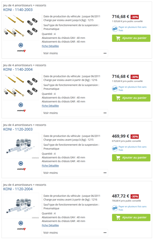 13. Je précise que je ne me sers de la voiture que le weekend, donc le confort n'est pas la priorité, 'je n'ai pas besoin de bilstein à 1200€ le kit. j'ai aussi trouvé ceux la mais je ne sais pas ce que cela vaut :