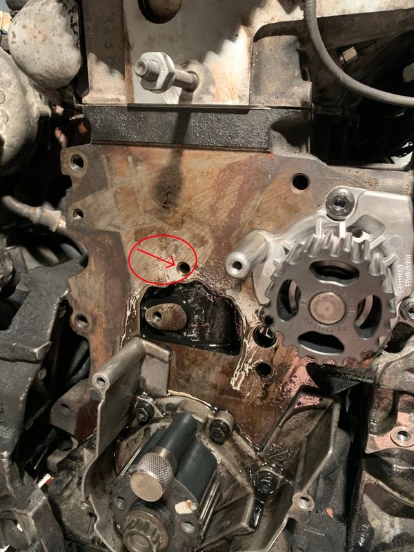 bonjour à tous j'ouvre un sujet en apparté de celui sur la réfection de l'A4. Mon problème : Je viens de terminer le changement du joint de culasse et une fois la distribution terminée, démarrage du moteur, 1er coup de clef ça part parfaitement, MAIS j'ai une fuite d'huile derrière l'amortisseur du tendeur de courroie de distribution. Ce qui me fait bugger c'est que pour moi il n'y a pas de circuit d'huile à ce niveau là ? Est-ce que je me trompe ? ai-je oublié quelque chose ? ça fait une journée que je cherche, j'ai démonté 10 fois la distri et je vois pas ... Sur la photo, entouré en rouge l'endroit d'où vient l'huile, du moins je pense... Si quelqu'un a une idée ou si c'est déjà arrivé à quelqu'un....