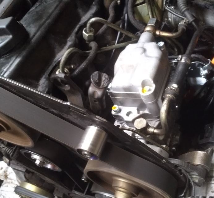 Salut , pour que ton calage soit correct , tu dois déjà pouvoir à la foi avoir le zéro visible sur ton volant moteur et pouvoir piger ta pompe injection . ensuite , cache culbuteur enlevé , tenter de piger ton AAC , la tu devines si c'est correct ou pas ! de toute façon , une foi la courroie enlevée et la poulie AAC désolidarisée , à ce moment tu positionnes la pige ou plaque AAC facilement . L'écrou AAC est à resserrer une foi la courroie installée et tendu !! Ainsi tu t'assures que tout est bien syncro , le zéro du volant moteur ( le vilebrequin) , l'AAc et la pompe ce n'est qu'a ce moment qu'il faut virer les piges et faire les premiers essaies