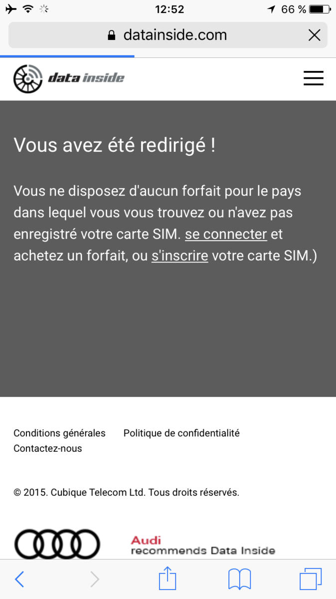 Le hot Spot est bien actif mais je reste bloqué sur la puce Audi qui (si j'ai bien compris) ne me laisse pas sortir car je n'ai pas souscris à l'abonnement requis.