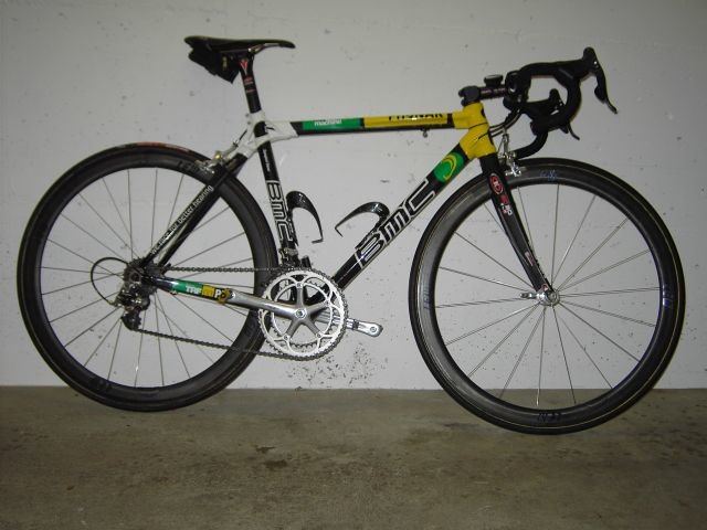 23. Voilà ma bécane :BMC carbone 2005 Campagnolo Record Pédales Speedplay Guidon carbone Easton Roues carbone *** Poids: 6.800 KG***