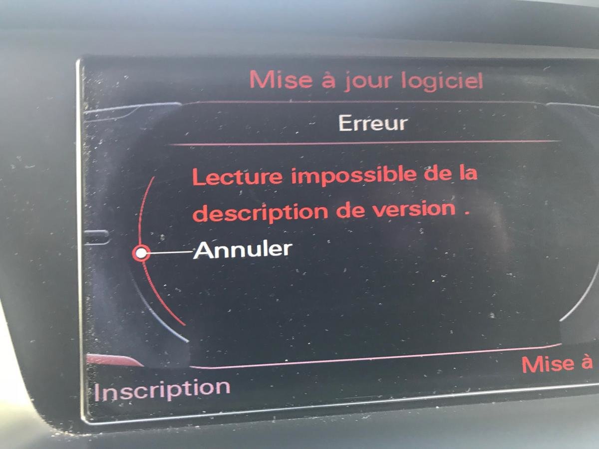 Voici ma version Quand je veux faire le maj Et le message erreur Avez vous une solution ? (Je sais pas pourquoi la première photo est à lenvers) C’est un Q5 de 2009 -