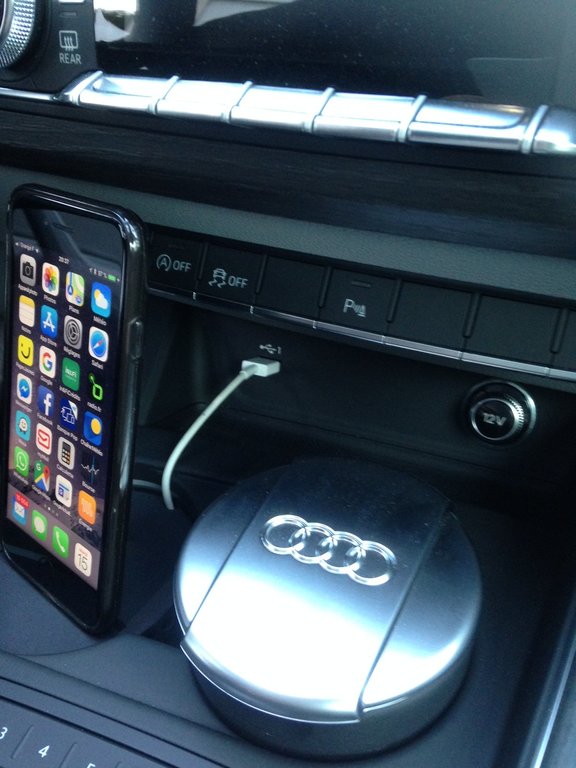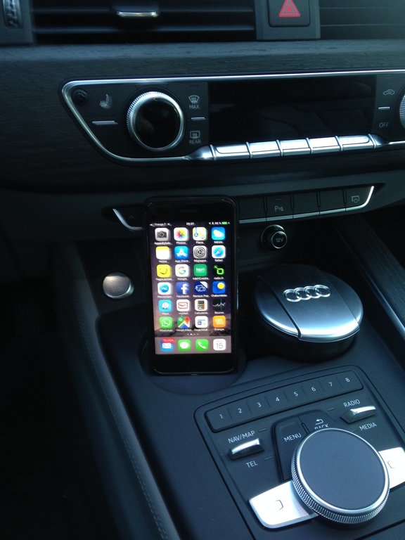 Voila, j'ai reçu mon support de téléphone. Très satisfait. Cela s'intègre très bien à l'intérieur, cela reste discret et le téléphone est plutôt bien placé du coup. J'ai du forcer pas mal pour faire rentrer la connectique Lightning de l'IPhone mais ca se fait bien (j'ai enlevé et remis plusieurs fois, cela a fini par faire le passage). J'ai une coque plastique plutôt fine, ca se positionne nickel. Bref je recommande à mon tour. Voici quelques photos: -