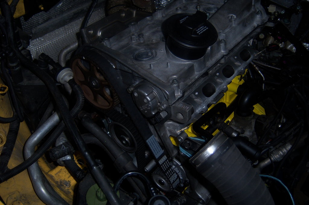 oui j'ai du couper la tôle a la disqueuse pour qu'il n'y pas de tension c'est vraiment compliqué cette auto pas de place turbo trop haut il faut viré le boulon de la pate du turbo (merci BAMpower) faire un peu de place avec celle de droite qui tien le tuyau dès que tu modifie un truc il faut en modifier 5 à côté... je regrette le temps de ma 106 rallye une fois tous sa fait on remplie le filtre d'huile on mets la distrib une 10aines de tours plus tard tous est ok les pistons ne touche pas les soupapes j'espère que tous ira pour le mieu au démarrage