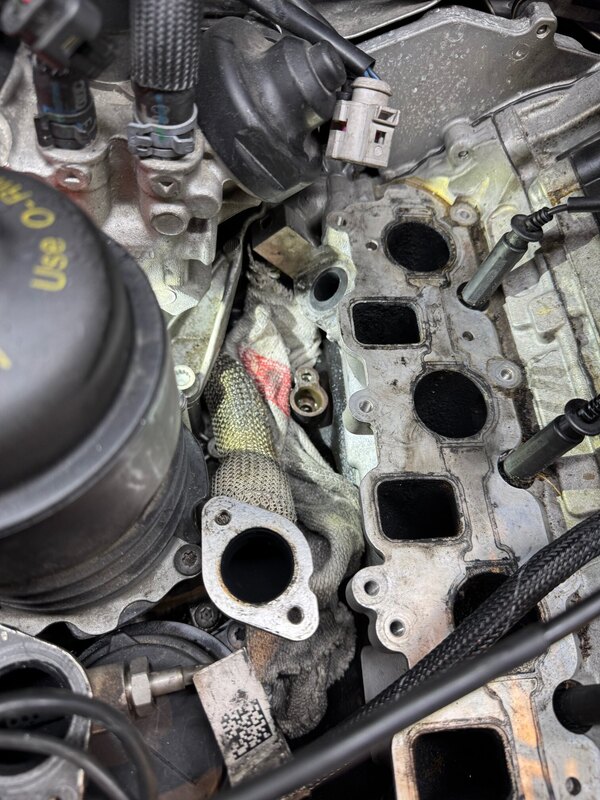Bonsoir à tous petit retour j’ai eu une perte de LR sur mon QQ V8 4.2TDI de 2014 problème enfin localisé ça venait de la petite tétine qui sort du V et qui rentre dans les EGR. Pour rappel aucune fuite apparente pas de fumée juste le fond du V humide. J’en ai profité pour changer le refroidisseur EGR et décalaminer l’admission complètement -