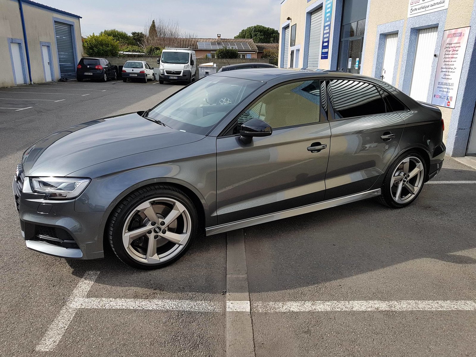 Bonjour à tous, J'ai l'immense plaisir d'avoir pris possession il y a 1 mois (le 22/12) d'une S3 Berline d'occasion récente (02/17 - 7 800Km). Comme j'ai beaucoup regardé le forum avant et après mon achat, je prends du temps pour présenter mon nouveau joujou :malelovies: Voici la config : - Couleur Gris Daytona nacré - Jantes alu style turb. 5 bras 225/40 R18 - Privacy Glass - Pack style noir titane Audi Exclusive - Sièges avant Sport S - Cuir nappa noir-noir-gris rocher - Retro ext regl degiv et rabat elec y compris auto trottoir pour côté pass AV - Boîtiers de rétroviseur extérieur en noir brillant Audi Exclusive - Suppression du nom de modèle et de l'inscription technologie - Toit ouvrant - Phares Audi Matrix LED avec clignotants AV/AR dynamiques - Boite S-tronic - Détecteur de lumière/pluie - Applications décoratives aluminium mat brossé éclairage design - Pack cuir étendu - Virtual Cockpit - Sièges chauffants à l'avant - Pack Assistance y compris assistant de conduite en embouteillage et assistant d'urgence - Système d'aide au stationnement plus - Audi pre sense front avec detection des piétons - Assistant au demarrage - Audi active lane assist - Adaptative cruise control - Assistant de feu de route - Airbags latéraux à l'arrière - Clé confort en combinaison avec système d'alarme antivol - Bang & Olufsen Sound System - Audi Connect esim 3 ans (02/2020) - Extension de garantie 3ans / 100 000Km (02/2020) Je crois que je n'ai rien oublié ! :icon_lol: Voici (si ça marche) les seules photos potables que j'ai pour le moment (lors de la réception) : :love: J'attends les beaux jours pour faire de nouvelles photos ! :icon_wink: Sinon, voici certaines des photos que j'ai eu lors de l'achat (voiture chez Audi Paris et moi à Toulouse) : Premier achat d'une voiture d'occasion sans la voir, pas évident ! Mais tout c'est bien passé, la voiture est dans un état irréprochable, comme neuf. La concession nickel. Je l'utilise quotidiennement et elle est parfaite !!! (très objectif bien sûr :icon_razz: ) 1 mois de pur bonheur et ça continu
