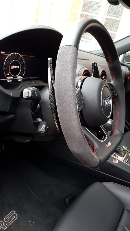 Salut à tous, j'apporte ma pierre à l'édifice 😁 Voici les extensions de palettes en carbone installées hier. J'ai également commandé la console centrale en carbone, ce plastique fait "tâche" je trouve... Bonne route à tous !