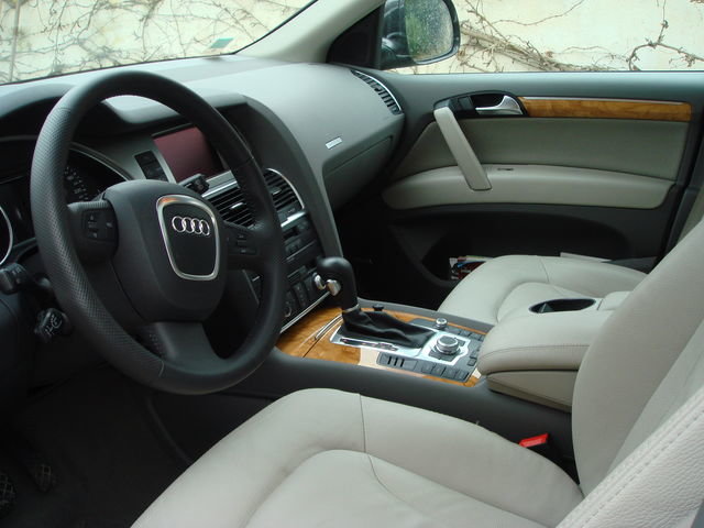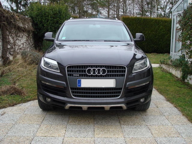 Audi Q7 3.0 TDI Avus 7 places DPF Principaux de série: Intérieur cuir sable sièges électriques systeme GPS MMI Jantes 20" Coffre électrique Peinture métallisée Gris sombre Support lombaires électriques à l'avant Projecteur Xénon Plus Options: - Systeme 3 toits ouvrants Opensky - Audi Side Assist (controle par diode des angles morts dans les retros) - Pack Off Road - Controle Pression des pneus sur MMI - Tapis de coffre - Systeme Audio Bose Surround 270W - Volant sport 3 branches cuir perforé - Boussole numérique retro interieur - Pack éclairage - Systeme Parking Advanced avec caméra de recul - Système Adaptive Cruise control (regul de vitesse auto avec la distance avec freinage et accélération couplés) Un phénomène à lui tout seul... j'ai quitté mon A4 Avant avec regret... mais je l'ai vite oubliée!!!