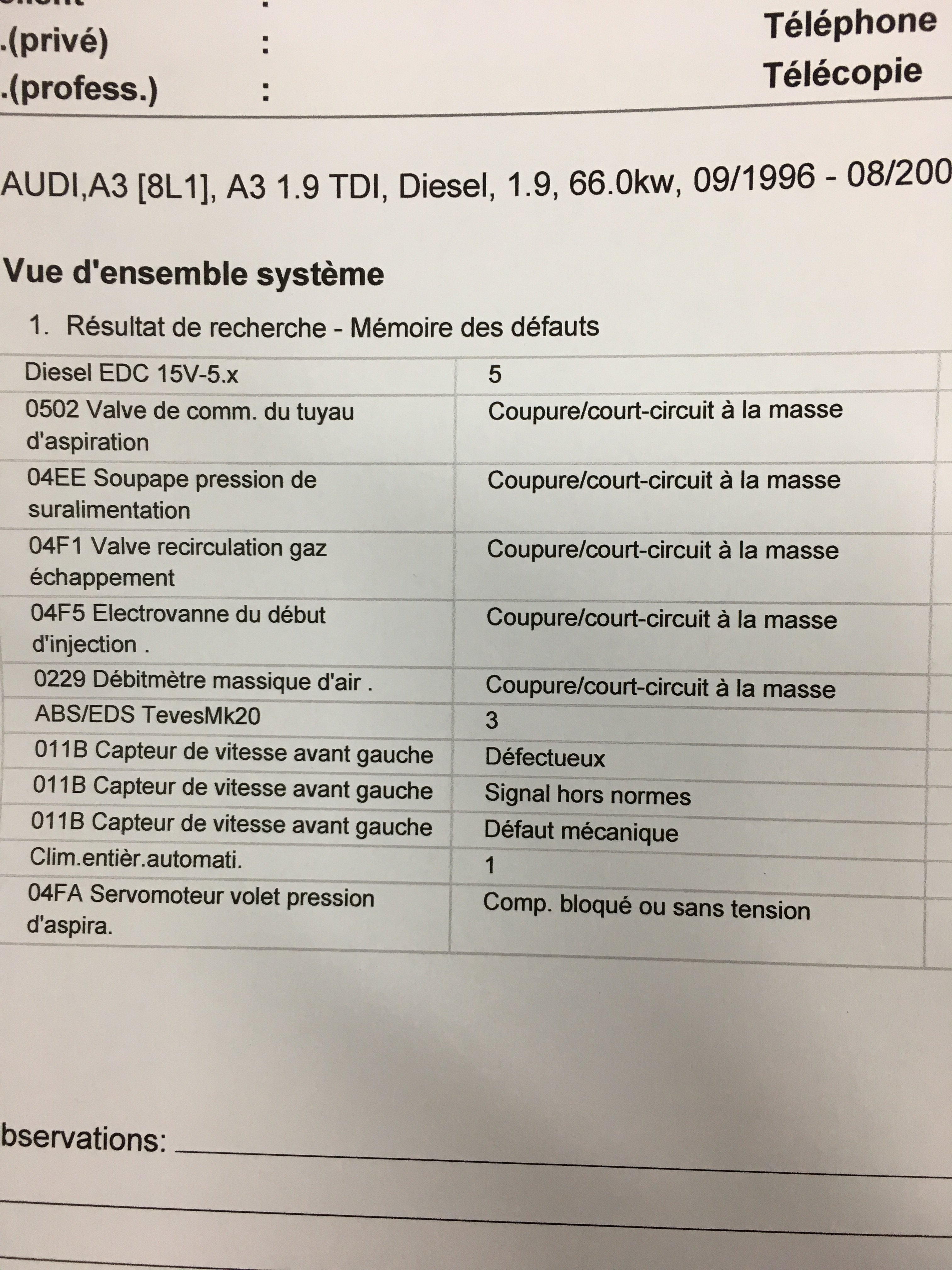 J'ai réalisé un diagnostique et me suis rendu compte qu'il y avait un soucis autre que mécanique... (voir photo)