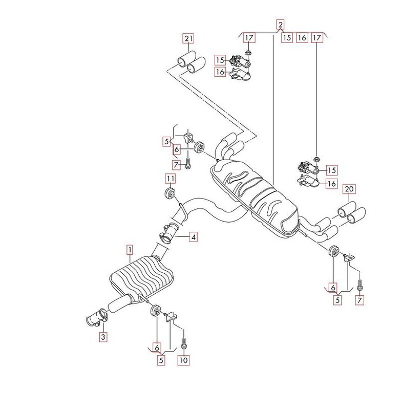 2. si il existe car c'est la référence 5Q0253409C Dans certains pays, Audi vend le tuyau qui permet de supprimer le silencieux (pas en france) et donc dans leurs catalogues de pièces détachées, ils prévoient également la pièce pour faire marche arrière. J'ai fait un screenshot de la vue éclatée. bon je viens d'appeler audi la pièce 1 = 437 € ttc la pièce 4 = 30.76 € ttc soit un total de 468 € quand même... ca fait ch*** quand même, je préférerai en trouver d'occas.