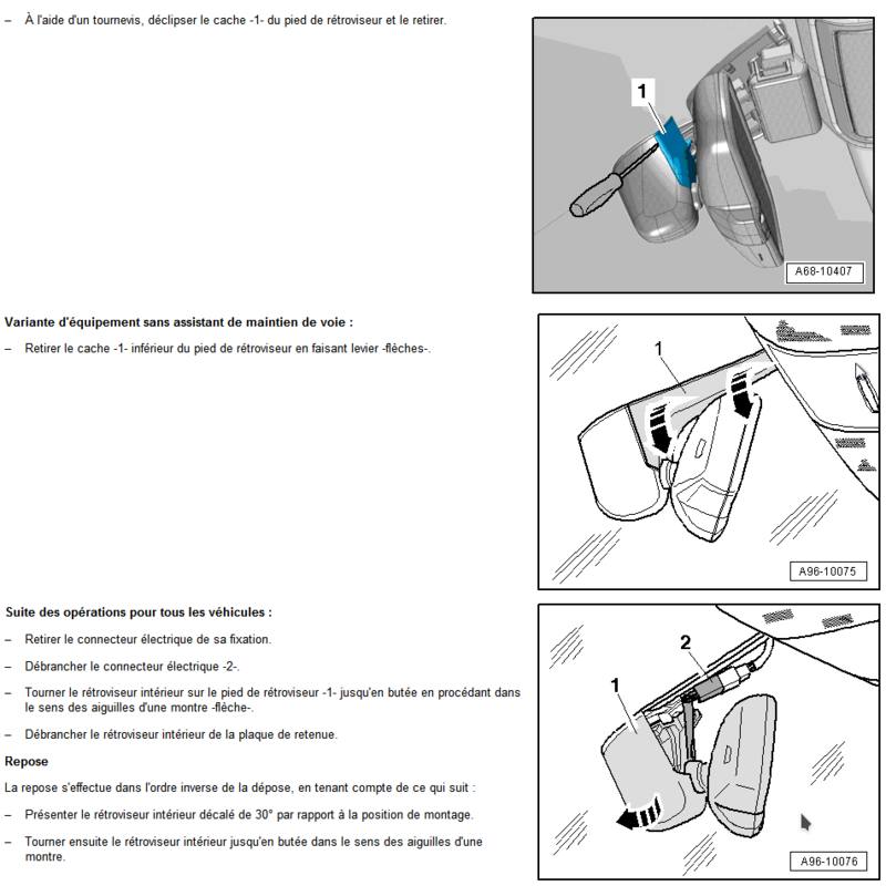 Ce tableau tu l'as obtenu de la part d'audi ? Etrange cette dépose moteur, après ça peut vouloir tout dire et rien dire. Es ce que le fait de déposer le compresseur s’apparente a une dépose moteur par exemple. Pas de trace de la vidange de boite ? c'est une manu ? Pour en revenir a ton histoire de retro je chercherai du coté de l'occaz https://www.ebay.fr/itm/Audi-A4-B8-A5-A7-A6-4G-Q5-8R-Innenspiegel-automatisch-abblendbar-8T0857511AB-EP5/263605082155?hash=item3d6016582b:g:cnEAAOSw0JpV6Fzd https://www.ebay.fr/itm/2009-AUDI-A4-B8-AVANT-DIMMING-REAR-VIEW-MIRROR-8R0857511B/264328894083?hash=item3d8b3ad683:g:Ht8AAOSwx59c4Xkm https://www.ebay.fr/itm/AUDI-A4-B8-INTERIOR-AUTO-DIM-DIP-REAR-VIEW-MIRROR-part-no-810857511/273622256442?hash=item3fb5284b3a:g:hdgAAOSwuHJbBtWF https://www.ebay.de/itm/8T0857511A-Z62-Audi-A4-A5-Innenspiegel-abblendbar-sternsilber/113713043786?hash=item1a79d3594a:g:2X8AAOSwxBNcrJvj https://www.ebay.de/itm/Original-Audi-A4-8K-A5-8T-Q7-Innenspiegel-automatisch-abblendbar-8T0857511AB-EP5/153306403581?epid=1230260943&hash=item23b1c612fd:g:CaYAAOSwvWBa7JAu Enfin un noir https://www.ebay.de/itm/Audi-A4-A5-A6-4G-Q5-Innenspiegel-Ruck-8T0857511AA-schwarz-Mirror-8T0857511AF/323621149067?hash=item4b5952d98b:g:wtQAAOSwosdcHknx Faut chopper la référence pour etre sur y a pas granche sur elsa -